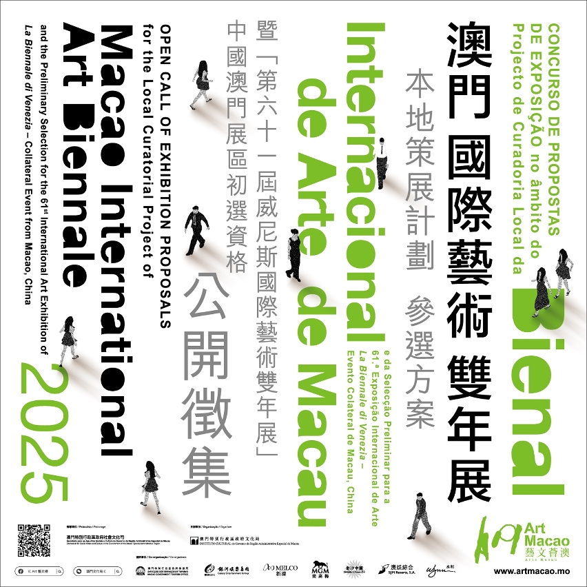 A “Arte Macau: Bienal Internacional de Arte de Macau 2025” (doravante designada por “Arte Macau 2025”) terá lugar no Verão deste ano. Sob o patrocínio da Secretaria para os Assuntos Sociais e Cultura do Governo da RAEM, este evento é organizado pelo Instituto Cultural (IC) do Governo da RAEM e co-organizado pela Direcção dos Serviços de Turismo de Macau (DST) do Governo da RAEM, Galaxy Entertainment Group, Melco Resorts & Entertainment, MGM, Sands China Ltd., SJM Resorts, S.A. e Wynn Resorts Macau. O IC está a aceitar, a partir de hoje e até 6 de Maio, propostas de exposição no âmbito do “Projecto de Curadoria Local”, um dos programas mais importantes de “Arte Macau 2025” e da Selecção Preliminar para a 61.ª Exposição Internacional de Arte La Biennale di Venezia – Evento Colateral de Macau, China. As equipas seleccionadas receberão um montante no valor máximo de MOP 500.000,00 para cobrir as despesas de organização. Indivíduos apaixonados pela arte contemporânea são encorajados a candidatar-se ao presente concurso.
