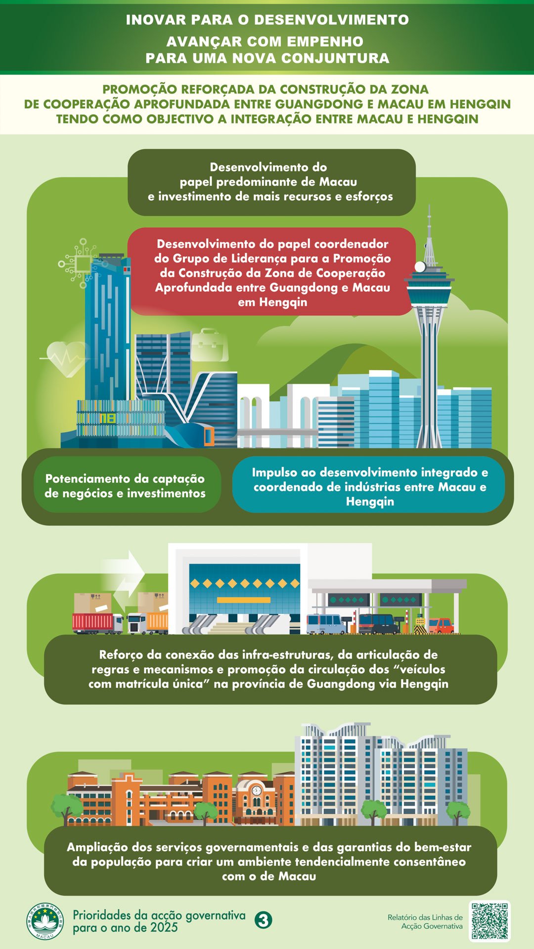 • 2. Promoção reforçada da construção da Zona de Cooperação Aprofundada entre Guangdong e Macau em Hengqin tendo como objectivo a integração entre Macau e Hengqin