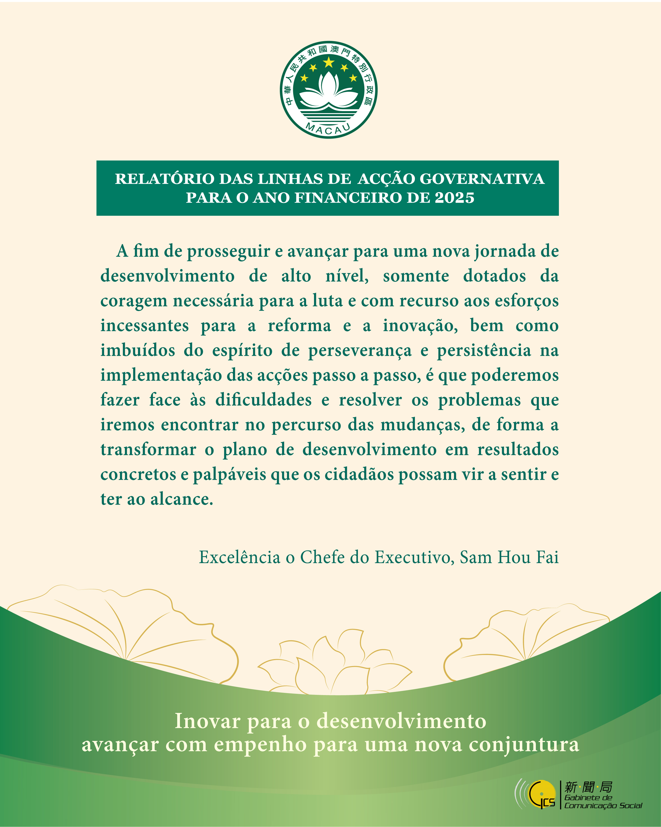 (Infografia) Relatório das LAG 2025 │ Destaques das palavras do Chefe do Executivo (3)