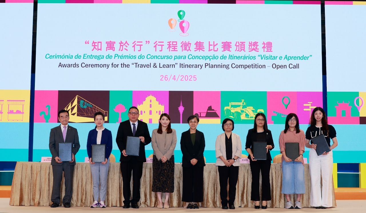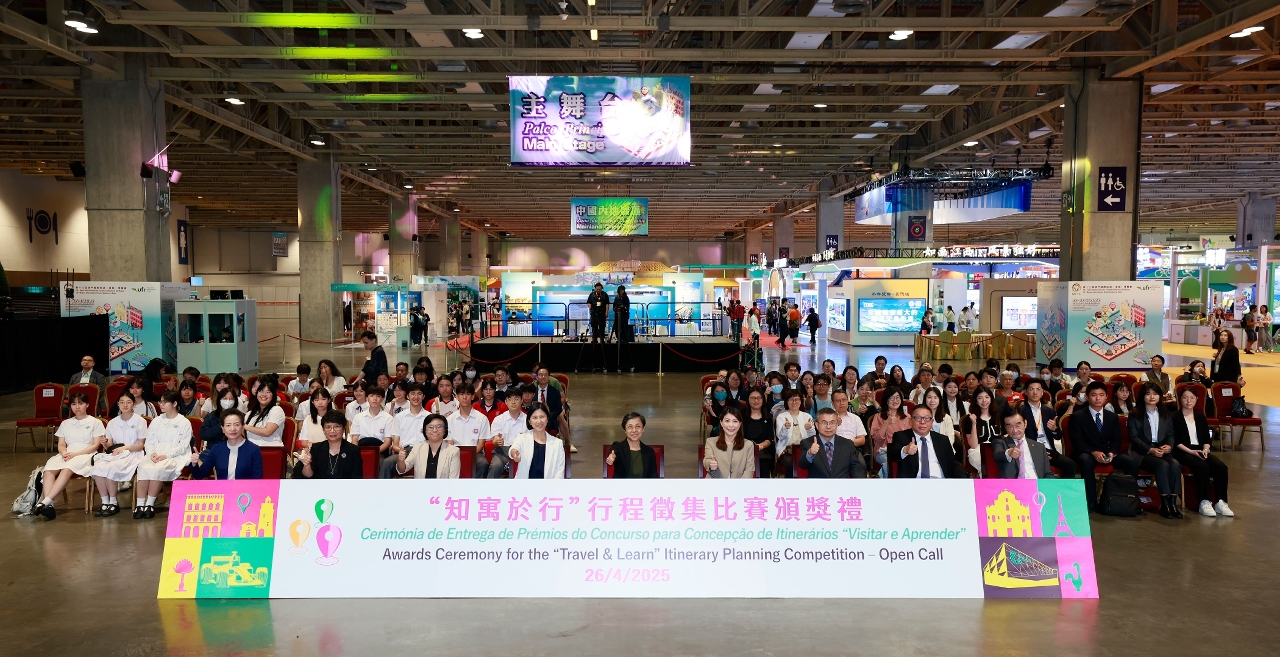 No ano passado, a Direcção dos Serviços de Turismo (DST) organizou o Concurso para Concepção de Itinerários “Visitar e Aprender”, para incentivar os estudantes e o público a desenvolverem um pensamento inovador, aproveitando os recursos turísticos e de viagens de estudo de Macau para conceber itinerários que combinem a aprendizagem com a experiência turística, para explorar as potencialidades das viagens de estudo. Em simultâneo, a iniciativa pretende elevar os conhecimentos e a atenção do público sobre o turismo de estudo, promovendo a articulação entre a indústria, a academia e o segmento de passeios de estudo, divulgando a integração intersectorial do “turismo + educação”. A cerimónia de entrega dos prémios do concurso teve lugar hoje (dia 26) na 13.ª Expo Internacional de Turismo (Indústria) de Macau durante a qual foram atribuídos os prémios de ouro, prata, bronze e menções honrosas no grupo de estudantes e no grupo geral, num total de 20 prémios.