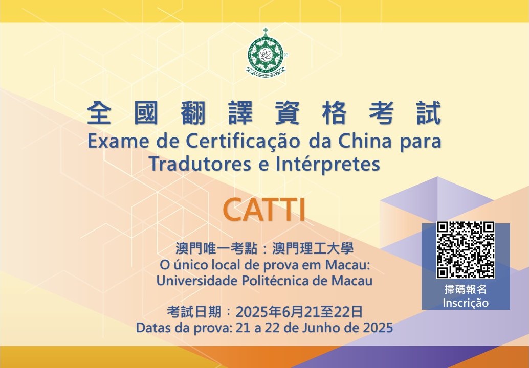 O Exame de Acreditação para Tradutores e Intérpretes da China (CATTI) 2025 realizar-se-á entre 21 e 22 de Junho na Universidade Politécnica de Macau (UPM). Como o único local de exame em Macau, a Faculdade de Línguas e Tradução (FLT) da UPM disponibilizará os exames de proficiência em tradução e interpretação Inglês-Chinês e Português-Chinês. As inscrições online estão abertas até 14 de Maio, sendo bem-vinda a participação activa dos profissionais interessados de todos os sectores.