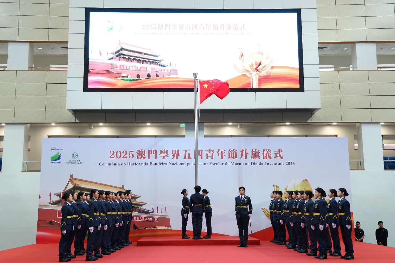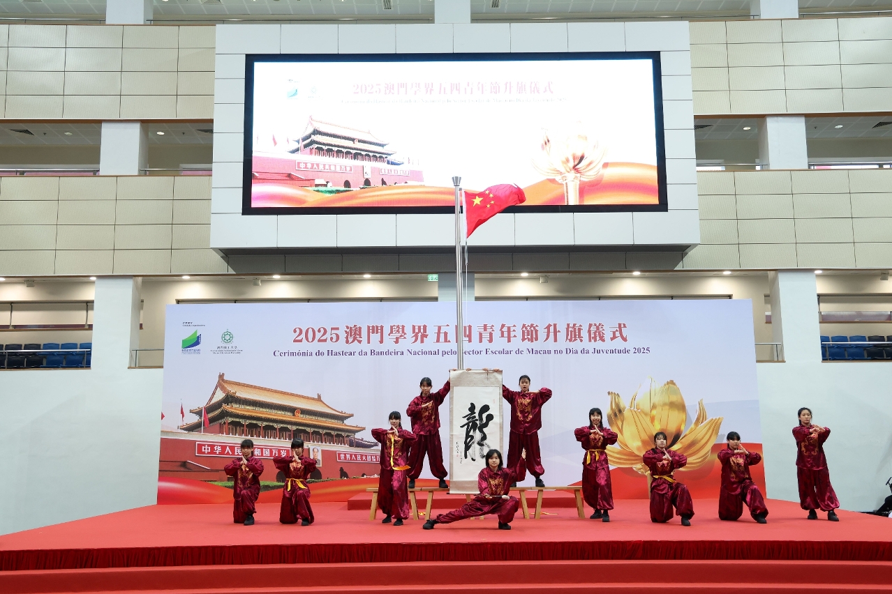 A “Cerimónia do Hastear da Bandeira Nacional pelo Sector Escolar de Macau no Dia da Juventude” teve lugar no dia 4 de Maio, pelas 7h45, no Pavilhão Polidesportivo da Universidade Politécnica de Macau, e contou com a presença dos seguintes elementos: Secretária para os Assuntos Sociais e Cultura, O Lam, Chefe do Departamento de Educação e Assuntos de Juventude do Gabinete de Ligação do Governo Popular Central na RAEM, Li Xuefei, Chefe do Gabinete de Estudos das Políticas do Comissariado do Ministério dos Negócios Estrangeiros da República Popular da China na RAEM, Conselheira Ma Naifang, Subchefe do Estado-Maior da Guarnição em Macau do Exército de Libertação do Povo Chinês, Coronel, Liu Huan, Director da DSEDJ, Kong Chi Meng, Subdirectores da DSEDJ, Teng Sio Hong, Iun Pui Iun e Wong Ka Ki, e os chefes e chefias funcionais da DSEDJ, bem como os representantes, respectivamente, da Associação de Educação de Macau, da Associação para a Promoção do Desenvolvimento do Ensino Superior de Macau, da Associação das Escolas Católicas de Macau e da Associação Educativa da Função Pública de Macau, os membros provenientes, respectivamente, do Conselho de Educação, do Conselho de Juventude e do Conselho Profissional do Pessoal Docente, e ainda os representantes das associações juvenis e os reitores, directores, docentes, estudantes e representantes do ensino superior de Macau e das escolas de ensino não superior.