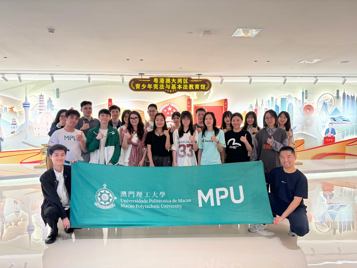 A Universidade Politécnica de Macau é a primeira instituição de ensino superior de Macau a organizar os estudantes universitários para visitar o Pavilhão de Educação sobre a Constituição e a Lei Básica para Jovens da Grande Baía Guangdong-Hong Kong-Macau. Com o objectivo de reunir os esforços dos jovens, organizou os alunos para saírem do campus escolar e se deslocarem à Grande Baía para aprender e experimentar os conhecimentos jurídicos do País, aumentando a sua consciência sobre a segurança nacional e a estabilidade social, incentivando-os a seguirem o espírito do 4 de Maio, a terem coragem de experimentar e assumir responsabilidades, a participarem na construção do Estado de Direito na Grande Baía e na Zona de Cooperação, a integrarem-se activamente no desenvolvimento nacional, e a escreverem, em conjunto, a história comovente do princípio “Um País, Dois Sistemas” em Macau.