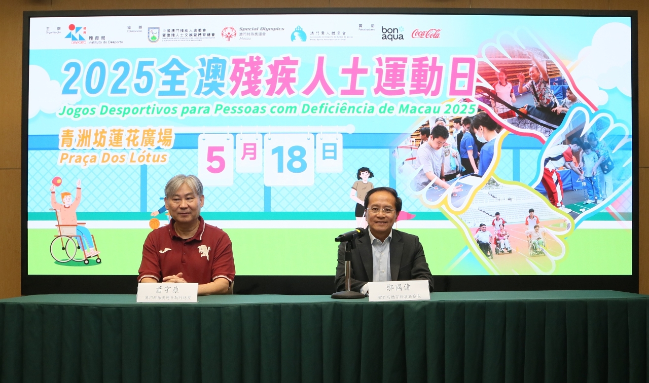 Organizado pelo Instituto do Desporto, em colaboração com o Comité Paraolímpico e Associação Recreativa e Desportiva dos Deficientes de Macau, a Special Olympics Macau e a Associação Desportiva dos Surdos de Macau, o “Dia Desportivo para Pessoas com Deficiência de Macau 2025” terá lugar no próximo dia 18 de Maio (domingo), das 15h00 às 18h00, na Praça dos Lótus do Bairro da Ilha Verde.