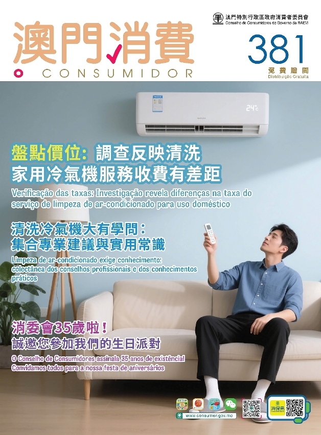 Atendendo à chegada em breve do Verão e às necessidades do consumidor sobre as informações relativas à cobrança do serviço de limpeza de ar-condicionado, a nova edição do boletim “O Consumidor” publicou o relatório da investigação sobre a taxa do serviço de limpeza de ar-condicionado para uso doméstico, bem como uma entrevista aos profissionais que apresentaram as precauções e os conhecimentos em relação à utilização e manutenção do ar-condicionado para alcançar o efeito economizador de energia e dinheiro. O boletim ainda anunciou a realização de um evento em celebração do 35.º aniversário do Conselho de Consumidores (CC) e os detalhes relacionados.