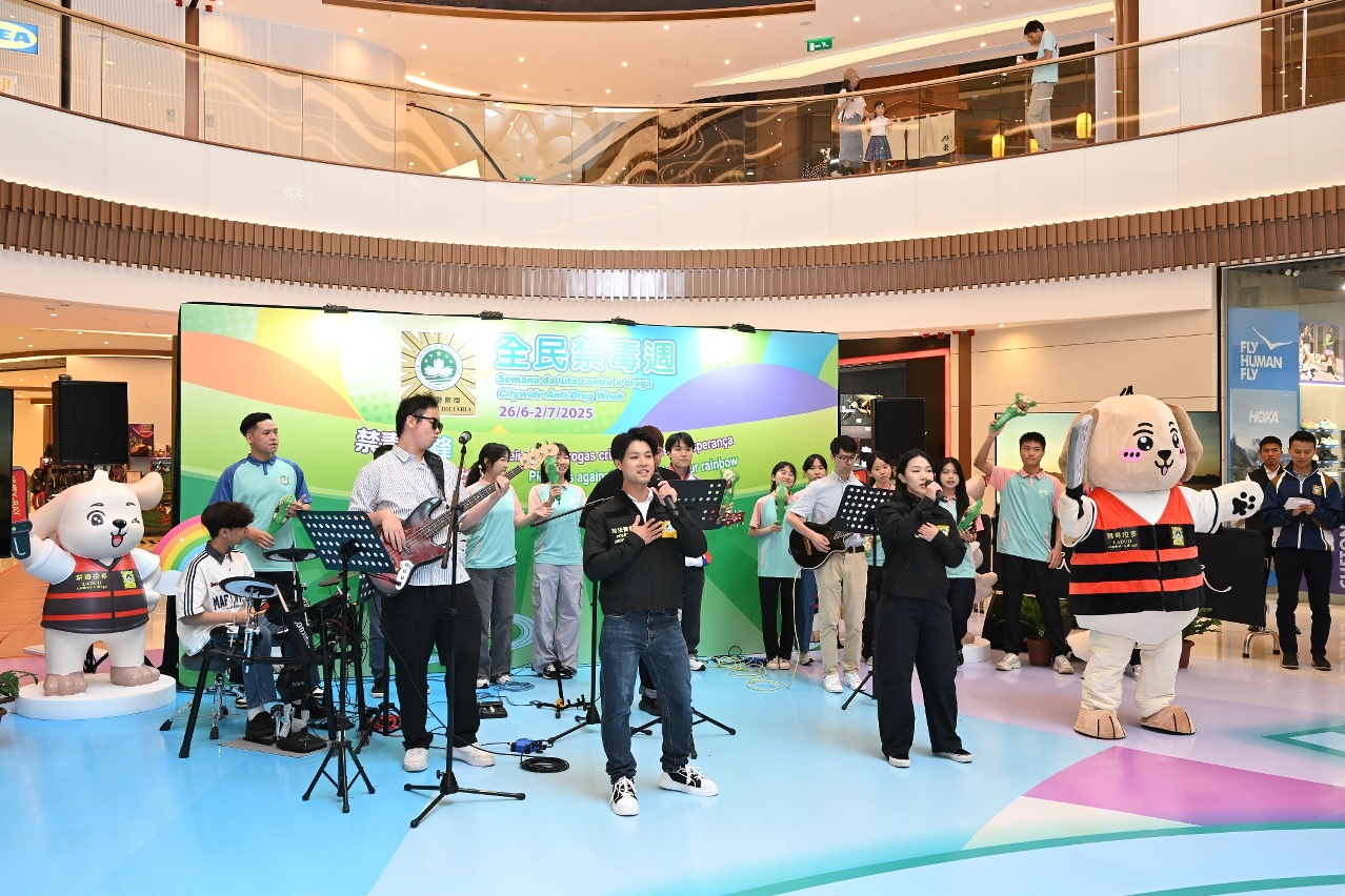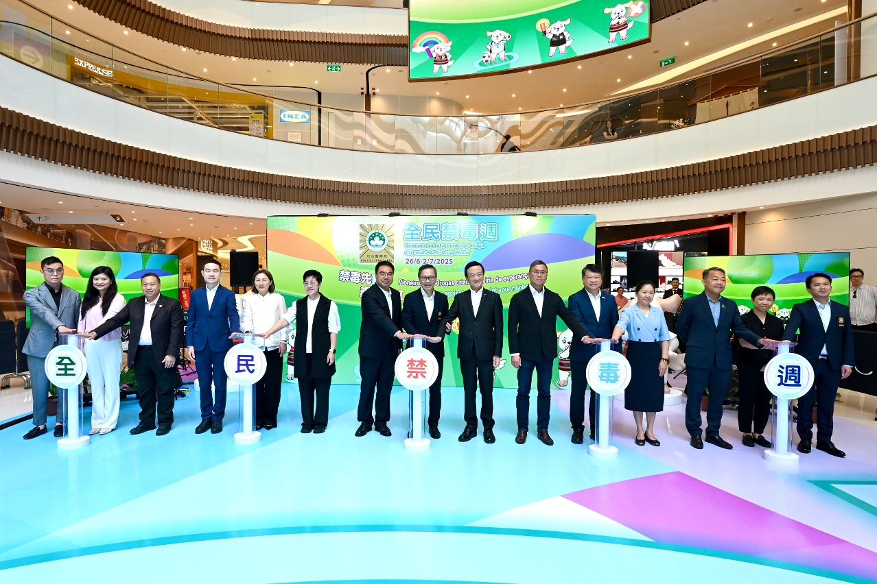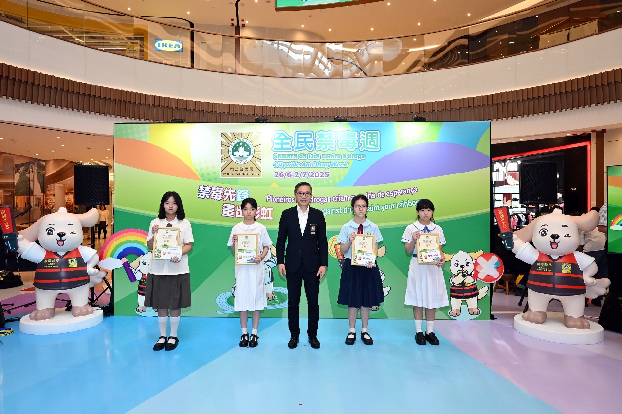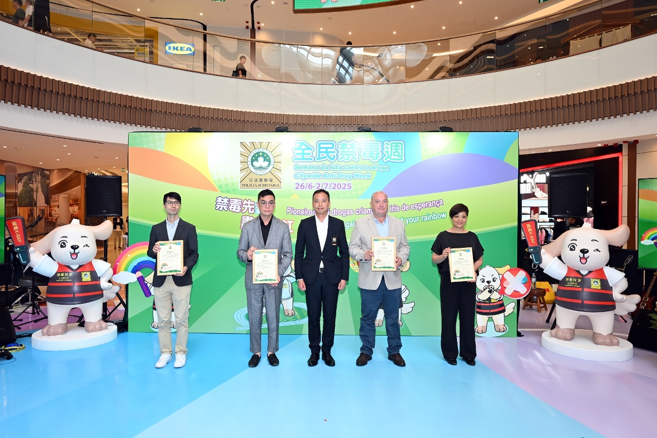 A campanha “Semana da luta contra a droga” realiza-se no NOVA Mall da Taipa no período de 26 de Junho a 2 de Julho, e a sua cerimónia de abertura teve lugar ao meio dia do primeiro dia da iniciativa. Foram convidados para presidir a cerimónia o 1.º subchefe de Gabinete da Comissão de Combate à Droga da província de Guangdong, chefe de Brigada Geral de Luta Contra a Droga da Directoria Provincial de Segurança Pública de Guangdong, LIU Weiguo, o presidente permanente da Associação de Administração de Propriedades de Macau também convocador-geral do Grupo “Amigos da Prevenção Criminal na Área da Habitação” da PJ, LAO Ngai Leong, a presidente da União Geral das Associações dos Moradores de Macau, NG Siu Lai, a presidente da direcção da Associação Geral das Mulheres de Macau, UN Sio Leng, o vice-presidente da Federação das Associações dos Operários de Macau, LEONG Pou U, o presidente da direcção da Associação Geral dos Chineses Ultramarinos de Macau, BI Chi Kin, o presidente da direcção da Aliança de Povo de Instituição de Macau, LEI Leong Wong, a presidente da direcção da Associação de Administração de Propriedades, SIT Un Na, o vice-presidente da Associação dos Técnicos Profissionais da Administração de Imóveis, CHUI Sio Man, o presidente da Associação de Profissionais do Sector da Administração de Propriedades de Macau, CHAO Ka Chon, a vice-presidente da direcção da Associação de Educação de Macau, IEONG Pui Ian, a directora de escola e vogal da direcção da Associação das Escolas Católicas de Macau, NG Sai Wa, o General Manager do NOVA Mall, Paul LEE e o director da PJ, SIT Chong Meng. Estiveram também presentes no evento os subdirectores da PJ, LAI Man Vai, SOU Sio Keong, SAM Kam Weng e as várias chefias da PJ.