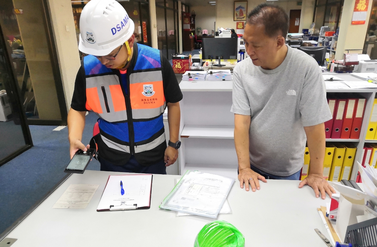 O pessoal da DSAMA e dos SA inspeccionaram as instalações dos terminais e pontes-cais do Porto Interior e do Porto de Ká-Hó, identificando de forma abrangente os potenciais riscos e garantindo a segurança e a ordem nas operações marítimas. Durante o processo, o pessoal não só efectuou uma inspecção minuciosa às infraestruturas dos terminais e pontes-cais, como também embarcaram nas embarcações ancoradas para realizar inspecções às instalações de embarque e desembarque, às operações de movimentação de mercadorias nos batelões, aos equipamentos de segurança de bordo, às zonas de carga, de descarga, de armazenamento, de reparação e de descanso, etc. A par disso, foram também apresentadas in loco as instruções de segurança específicas e opiniões técnicas.