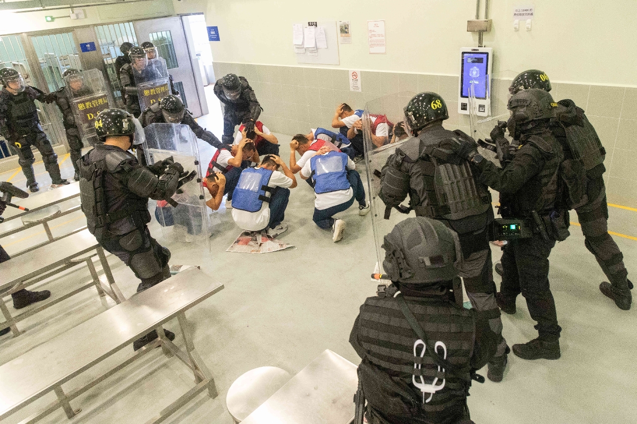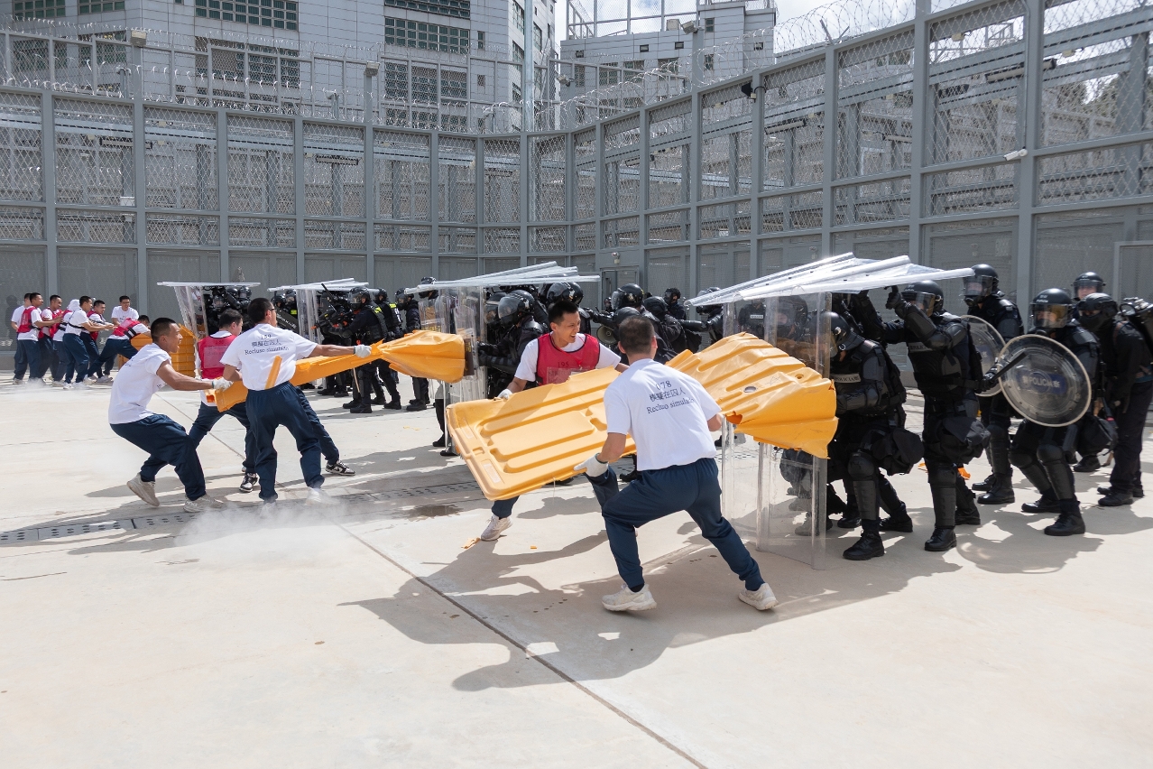 O exercício teve início pelas 15h00, tendo sido simulado o seguinte incidente: na zona prisional masculina do EPC, quatro reclusos envolveram-se numa discussão e confronto físico devido ao visionamento da televisão. O conflito converteu-se numa rixa, apesar da persuasão dos técnicos sociais. Para prevenir a agravação do incidente, a DSC activou imediatamente o “Plano de Resposta a Emergências da DSC”, instalando um centro de comando de resposta a emergências, destacando uma equipa antimotim conjunta do EPC composta pela Equipa Tática de Intervenção e a Equipa Antimotim, para controlar o motim e suspender todas as actividades no estabelecimento prisional. Tendo chegado rapidamente ao local, a equipa controlou o incidente com sucesso e suprimiu os reclusos que provocaram a perturbação.