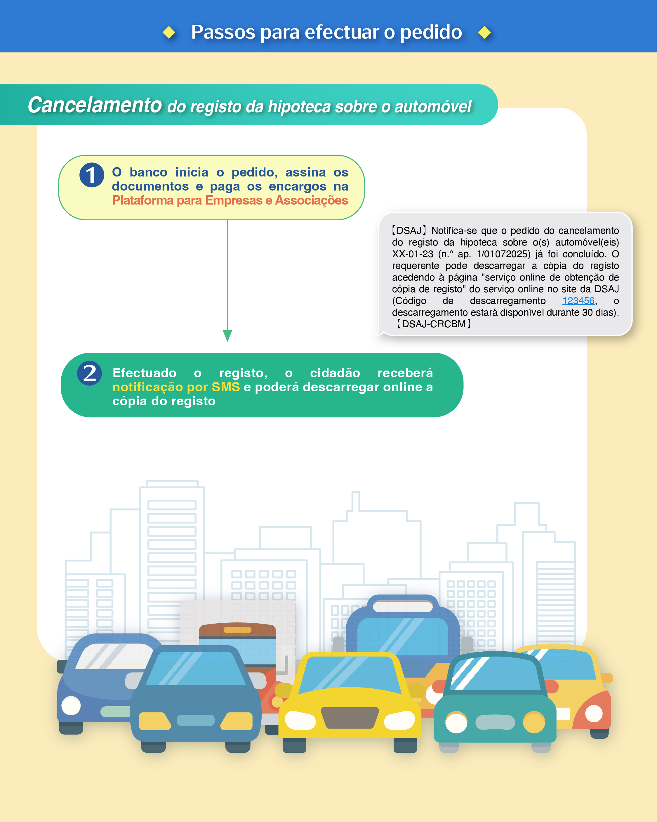 Quanto aos registos predial e de bens móveis, é lançado o serviço totalmente electrónico de cancelamento do registo de hipoteca de imóveis e de automóveis, o que muda completamente a prática de aquisição dos serviços ao longo destes anos. Actualmente, para o cancelamento de registo de hipoteca de imóveis e de automóveis, o requerente tem de dirigir-se presencialmente a cartórios notariais e à Conservatória do Registo Predial para apresentar o pedido. Na sequência de tratamento das respectivas formalidades notariais pelo representante do banco, o requerente desloca-se pessoalmente à conservatória para pagar os encargos e levantar a cópia do registo. Assim sendo, em relação ao serviço totalmente electrónico lançado desta vez, os cidadãos não necessitam de se deslocar aos serviços para apresentar nenhum pedido ou documento, e os bancos (credores hipotecários) podem proceder, de modo directo e online, através da Plataforma para Empresas e Associações, à prestação da declaração de renúncia à hipoteca, à apresentação do pedido de registo e à obtenção da cópia do registo, reduzindo então o tempo precioso e esforços dos cidadãos e os procedimentos administrativos do banco, de modo a facultar uma conveniência ao máximo.