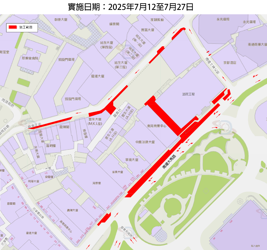 Os trabalhos de ligação de tubagens da empreitada de construção do edifício do tribunal na Avenida da Praia Grande estão a ser executados de forma faseada e ordenada desde o dia 16 de Junho do corrente ano, prevendo-se a conclusão da 1.ª fase da obra, na Rua do Padre Luís Fróis S.J. no dia 12 de Julho conforme o planeado e a retoma da circulação no mesmo dia. Os trabalhos da 2.ª fase da obra, no troço da Avenida da Praia Grande, junto ao Edifício Keng Ou, terão início no dia 6 de Julho e, entre 12 de Julho e 10 de Agosto, serão executados os trabalhos no troço da Avenida da Praia Grande, entre a Rua Central e o Edifício Montepio, sendo que nos citados períodos serão implementadas medidas provisórias de trânsito, pelo que se apela aos cidadãos para tomarem a atenção necessária às alterações e a planearem com antecedência o seu percurso de deslocação.