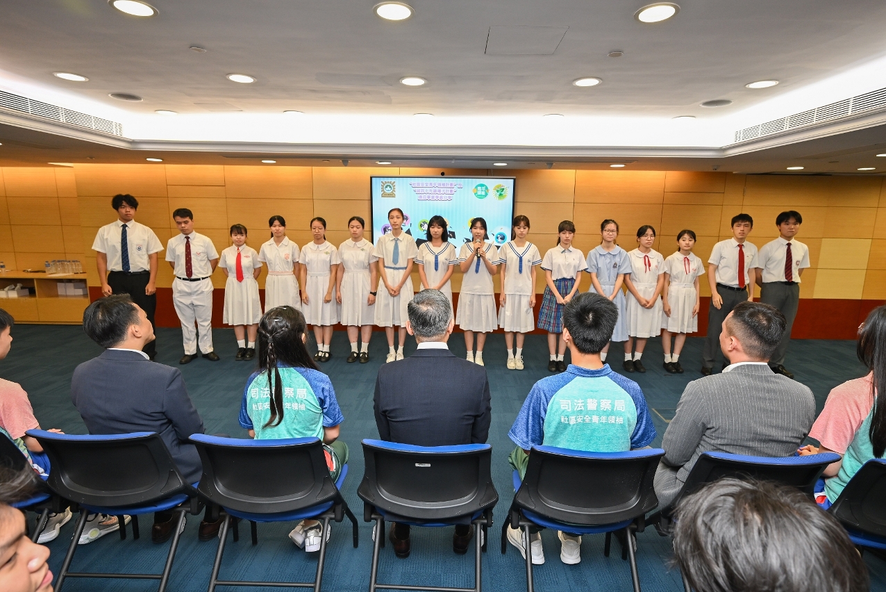 Os representantes dos recém-graduados, LAU Pui Man e WONG Kin Seng, partilharam os seus sentimentos na cerimónia de despedida, referindo que, através de formação sistemática, visitas e actividades de interesse público, não só adquiriram conhecimentos práticos sobre direito e prevenção criminal, como também compreenderam profundamente o trabalho policial, o que os levou a perceber o papel, as responsabilidades e o compromisso dos jovens na sociedade. Eles irão continuar a cumprir a missão de garantir a segurança comunitária, a trabalhar em conjunto com a polícia na promoção da educação jurídica e a transmitir a força da justiça