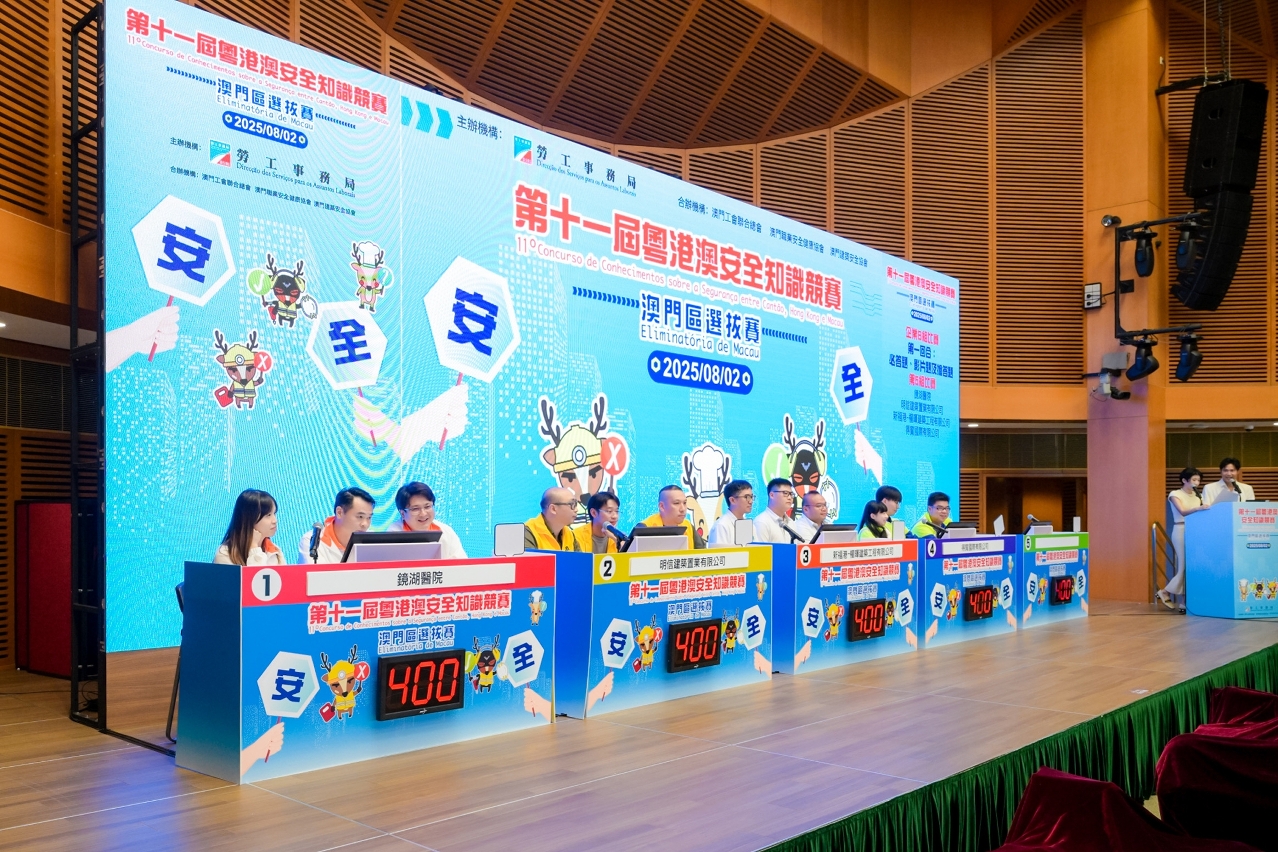 A 11.ª Competição de conhecimentos de segurança de Guangdong, Hong-Kong e Macau, organizada pela Direcção dos Serviços para os Assuntos Laborais (DSAL) em conjunto com o Departamento da Gestão de Emergência de Guangdong e a Occupational Safety and Health Council de Hong-Kong, terá lugar em Setembro de 2025 na província Guangdong. Com vista a seleccionar equipas representativas locais para a Competição, a DSAL organizou a prova de selecção regional de Macau da 11.ª Competição de conhecimentos de segurança de Guangdong, Hong-Kong e Macau no dia 2 de Agosto de 2025 (sábado), no Salão de Convenções do Centro de Ciência de Macau, tendo atraído a participação de 47 equipas de um total 7 associações e 21 empresas.