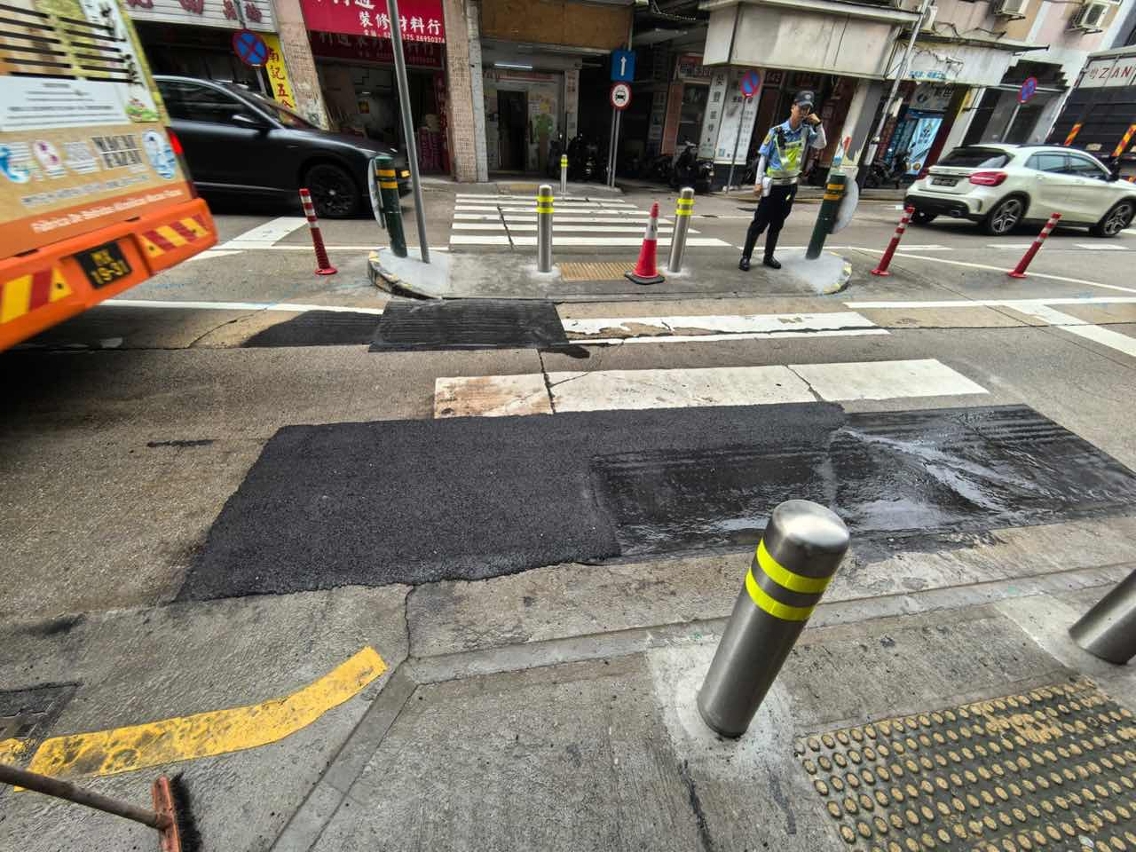 Recentemente, numa inspecção efectuada pelo IAM ao troço de pavimento com betão armado na Rua do Visconde Paço de Arcos, perto da passagem para peões, verificou-se que, devido à circulação frequente de veículos pesados e às chuvas torrenciais que se têm registado nos últimos dias, a via pública ficou desagregada e com barras de aço expostas. Por isso, surgiu o risco de queda de pavimento, que pode afectar a segurança da circulação de veículos, pelo que o IAM adoptou, de imediato, medidas provisórias, utilizando asfalto adequado para proceder à reparação para efeitos de recuperação provisória e eliminação de risco. No entanto, a pavimentação provisória dificilmente consegue elevar a capacidade de carga uniforme do pavimento, sendo necessário proceder à repavimentação urgente e à reparação do respectivo troço, a fim de garantir a segurança da circulação rodoviária.