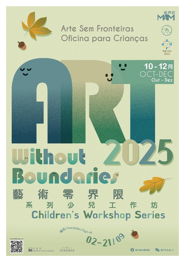 Como evento principal dos “Amigos do MAM” que se realiza duas vezes por ano, a “Arte Sem Fronteiras” tem sido sempre bem-recebida entre pais e filhos. Esta série de oficinas levará as crianças e jovens a embarcar numa viagem artística através do tempo, começando com as criações contemporâneas da “Arte Macau 2025”, antes de percorrer a antiga rota da porcelana para experimentar a fusão e conexão cultural e artística entre a China e Portugal. As oficinas são organizadas para diferentes idades e idiomas. A “Arte para Miúdos e Graúdos – Oficina de Criação Artística para Famílias” é adequada para crianças dos 4 aos 6 anos, onde se juntam aos pais para seguir os passos de mestres artísticos, partilhando a alegria da criação entre pais e filhos; as crianças dos 5 aos 10 anos podem escolher entre sessões em cantonês e inglês da “Vamos Brincar com a Arte – Oficina de Criação Artística para Crianças” (um total de cinco turmas), para explorar o espírito criativo da arte contemporânea e antiga através da criação multimédia; os jovens dos 11 aos 16 anos podem inscrever-se na “Rapsódia Azul e Branca–Oficina de Pintura em Porcelana para Jovens”, explorando em profundidade a conotação cultural da porcelana azul e branca antiga enquanto aprendendo a transformar padrões tradicionais em obras de azulejo que expressam a estética contemporânea. Cada oficina tem a duração de 12 horas, com uma taxa de 240 patacas, realizada no Espaço Zero, R/C do MAM ou no Quadrado de Arte, R/C do Museu das Ofertas sobre a Transferência de Soberania de Macau.