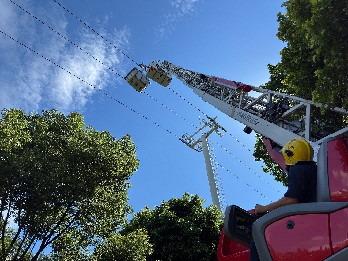 Com o objectivo de reforçar a capacidade de emergência e contingência do teleférico da Guia em caso de incidente, o Corpo de Bombeiros (CB) realizou, na manhã do dia 15 de Setembro de 2025, um simulacro de salvamento no local acima referido em conjunto com o Instituto para os Assuntos Municipais (IAM).