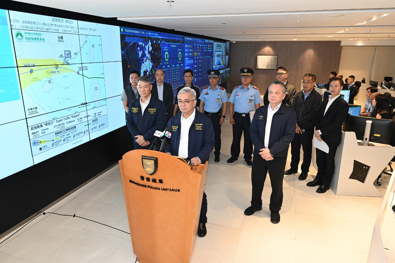 Sob a influência da tempestade tropical “Ragasa”, a Direcção dos Serviços Meteorológicos e Geofísicos (DSMG) emitiu um alerta no dia 20 de Setembro, onde indicou que a tempestade "Ragasa" deveria atingir o nível de super tufão e poderiam ocorrer inundações resultantes de "Storm Surge" com nível semelhante ao da tempestade tropical "Mangkhut". Após avaliação, concluiu-se que “Ragasa” representaria uma grave ameaça para Macau. O Governo da RAEM passou a estar em alerta máximo, tendo o Chefe do Executivo, em conjunto com os cinco secretários, convocado uma reunião extraordinária para delinear uma série de trabalhos de resposta ao super tufão "Ragasa" e instruindo todas as áreas para a necessidade de prestação de apoio, colaboração, aconselhamento e exercício dos trabalhos de prevenção e de resposta, a fim de garantir ao máximo a segurança da vida e dos bens dos cidadãos e a estabilidade social.