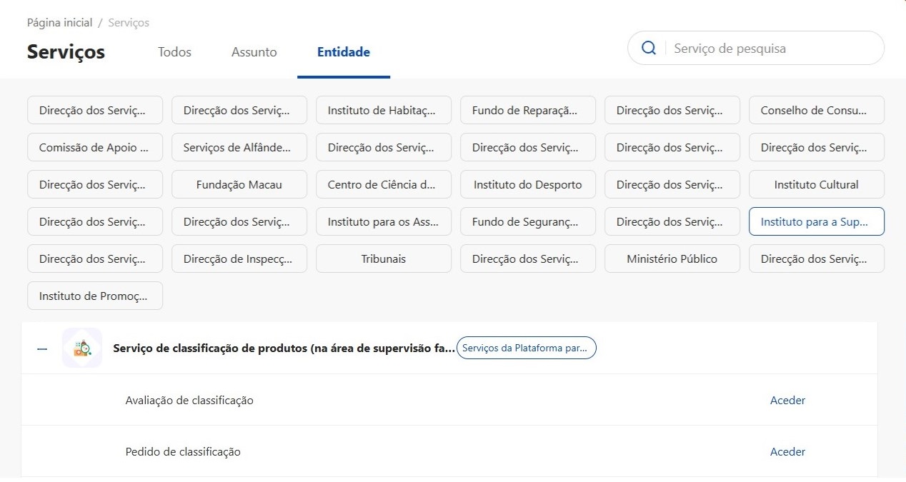 O serviço de classificação de produtos (na área de supervisão farmacêutica) lançado na “Plataforma para Empresas e Associações” inclui dois sub-serviços: “Avaliação de classificação” e “Requerimento de classificação”. Os requerentes podem utilizar a função “Avaliação de classificação” para realizar uma avaliação preliminar imediata dos seus produtos, através do preenchimento do questionário de avaliação e das informações da composição dos produtos, o sistema irá produzir automaticamente resultados preliminares da avaliação de classificação com base nas informações preenchidas pelos requerentes. Além disso, os requerentes podem ainda, através da função “Requerimento de classificação”, apresentar as informações de produtos online para proceder ao requerimento do serviço de classificação de produtos, não sendo necessário a deslocação pessoal ao ISAF para o efeito.
