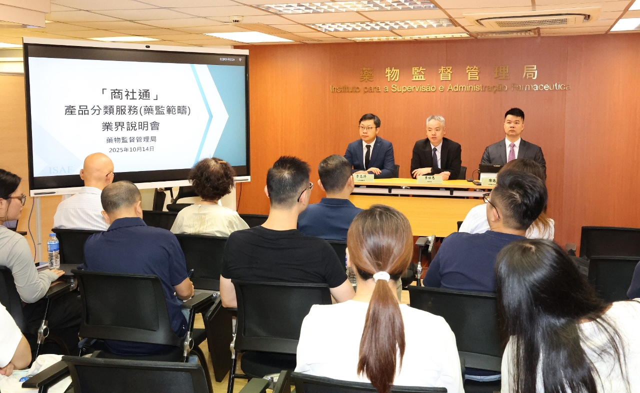 Em articulação com o desenvolvimento da governação electrónica do Governo da RAEM e com vista a facilitar ainda mais aos estabelecimentos de actividade farmacêutica e aos sectores relacionados o tratamento de serviço de classificação de produtos na área de supervisão farmacêutica, o Instituto para a Supervisão e Administração Farmacêutica (ISAF) irá lançar, no dia 16 de Outobro de 2025, pelas 12h00, o “serviço de classificação de produtos (na área de supervisão farmacêutica)” na “Plataforma para Empresas e Associações”. O conteúdo do serviço abrange as funções de avaliação preliminar online da classificação de produtos e as de requerimento de classificação, permitindo aos requerentes efectuar o tratamento dos respectivos assuntos online em qualquer lugar e a qualquer momento.