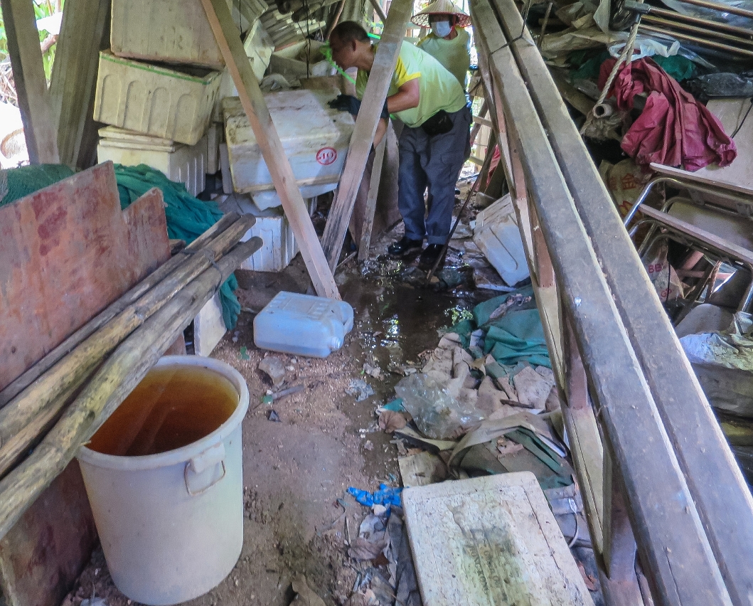 Face à continuidade do risco de propagação da febre de dengue e da febre Chikungunya (doravante designada por "duas febres") em Macau e para assegurar a protecção da saúde pública, os Serviços de Saúde, em conjunto com o Instituto para os Assuntos Municipais (IAM), o Corpo de Polícia de Segurança Pública e a Direcção dos Serviços de Solos e Construção Urbana realizaram no dia 16 de Outubro uma inspecção conjunta a um terreno não aproveitado situado na Rua Leste da Encosta. Apesar de o terreno em causa ter sido objecto de vários pedidos de melhoria, a sua higiene não melhorou, e durante a inspecção verificou-se que a higiene ambiental continua a ser má, existindo fontes de proliferação de mosquitos em vários locais e uma grande quantidade de actividades de proliferação de mosquitos. Deste modo, os trabalhadores tomaram de imediato medidas urgentes de tratamento, cabendo ao IAM remover a água estagnada e os resíduos no local, e, em simultâneo, os Serviços de Saúde realizaram a eliminação química de mosquitos, com vista a reduzir o risco de propagação de doenças naquela zona; Ao mesmo tempo, foi exigido aos proprietários a implementação rigorosa dos trabalhos de eliminação de fontes de proliferação de mosquitos e de eliminação de mosquitos, para mantermos em conjunto a higiene comunitária.