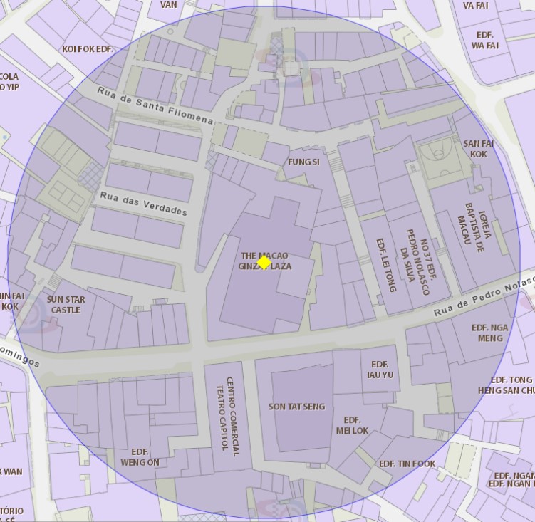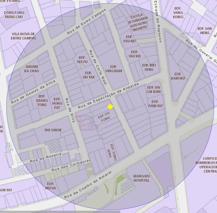 Tendo em conta que a área de acção do mosquito Aedes Albopictus é de cerca de 100 metros em torno do ponto de proliferação, foi definida uma área de risco num raio de 100 metros como alvo da presente acção de eliminação de mosquitos (vide o mapa em anexo). Os Serviços de Saúde, apelam ao público para prestar atenção e tomar medidas preventivas em conjunto, a fim de reforçar a prevenção de doenças transmitidas por mosquitos.