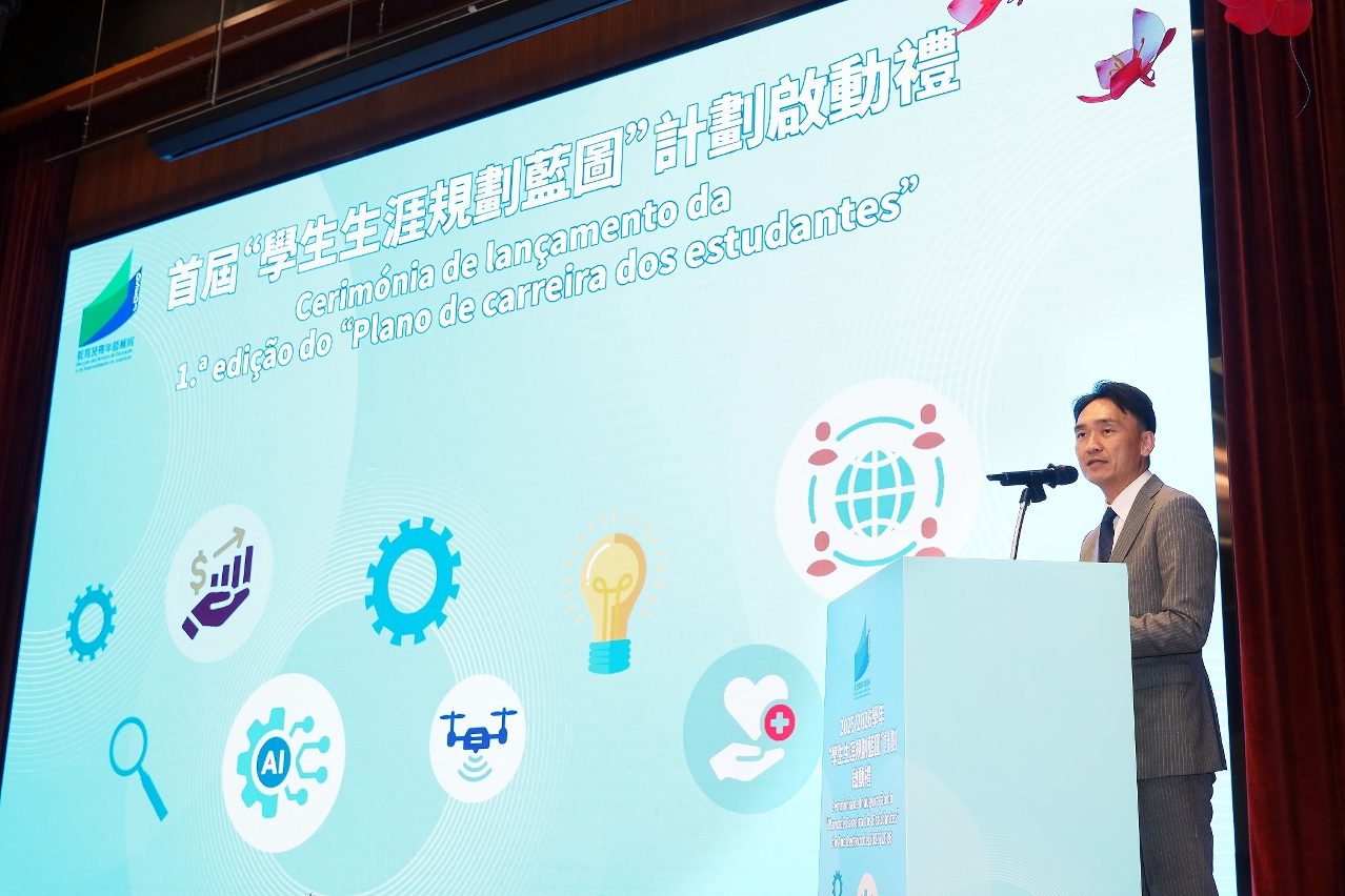 O director da DSEDJ, Kong Chi Meng, referiu no seu discurso que, de acordo com as necessidades dos estudantes nas diferentes fases de crescimento, o Governo da RAEM criou quatro aspectos que abrangem planeamento da carreira profissional, prosseguimento dos estudos e estágio, escolha de emprego e empreendedorismo e mobilidade ascendente. Para uma articulação mais precisa entre as necessidades individuais dos estudantes e a tendência do desenvolvimento social de Macau, o “Plano” consiste em seis objectivos, nomeadamente conhecer-se a si próprio, conhecer o caminho de prosseguimento de estudos, conhecer o mundo do trabalho, conhecer o ambiente de emprego, desenvolver as técnicas de trabalho, e criar um estilo de vida pessoal, os quais ajudam os estudantes a transformar os seus interesses e capacidades em objectivos claros e planos de acção. Para que o conceito do plano da carreira profissional possa abranger o ensino primário complementar, no ano lectivo de 2025/2026, será estendido, pela primeira vez, aos alunos do 6.º ano do ensino primário. O mesmo responsável encorajou, no seu discurso, os estudantes a aproveitarem bem as oportunidades de desenvolvimento dos tempos e, de acordo com o seu plano de planeamento de vida, estabelecerem as suas ideias e carreiras em horizontes mais amplos.