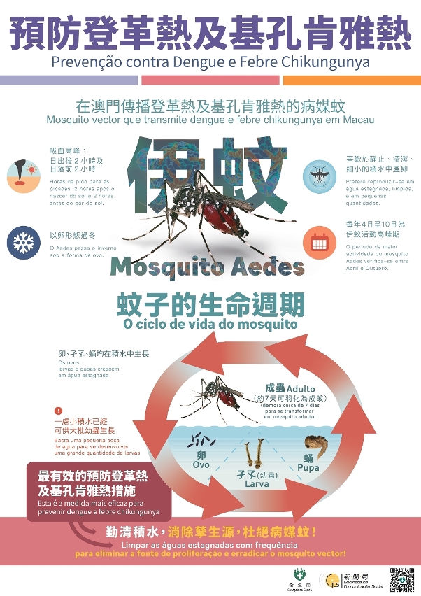 As duas febres são transmitidas através da picada do mosquito Aedes albopictus infectado pelo vírus, não sendo transmitida directamente entre os seres humanos. Os mosquitos Aedes Albopictus que transmitem duas febres preferem habitar na sombra, sendo o pico da actividade de alimentação sanguínea duas horas após o nascer do sol e duas horas antes do pôr-do-sol. Dado que os trabalhadores de limpeza ao ar livre necessitam de trabalhar ao ar livre por um longo período de tempo, deslocando-se a diversas zonas e descansando e permanecendo frequentemente em lugares sombrios, pelo que é mais fácil ser picado por mosquitos, o que pode causar um alto risco de infecção. Para reduzir o risco de infecção durante o trabalho ao ar livre, os Serviços de Saúde apelam a todos os trabalhadores ao ar livre (por exemplo, trabalhadores de takeaway, trabalhadores de zonas verdes e jardins, trabalhadores de limpeza ao ar livre, etc.) para prestarem atenção à prevenção dos mosquitos ao ar livre, nomeadamente: