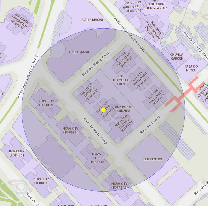 Em resposta à notificação de um (1) caso importado de febre de dengue, no dia 26 de Outubro, os Serviços de Saúde irão proceder, em breve, ao trabalho de eliminação química de mosquitos, nas zonas de risco perto do Edifício Hong Cheong (Bloco 2) da Taipa, do Edifício Nam San (Bloco 3) da Taipa, do Centro Médico de Taipa do Hospital Kiang Wu, e do Hotel Andaz Macau. Tendo em conta que a área de acção do mosquito Aedes é de cerca de 100 metros em torno do local de reprodução, a área de risco com um raio de 100 metros será abrangida por este trabalho de controlo. Por conseguinte, os Serviços de Saúde apelam à população para que esteja atenta e tome medidas preventivas em conjunto, a fim de reforçar a prevenção de doenças transmitidas por mosquitos. Relativamente às áreas envolvidas, podem consultar as fotografias em anexo.