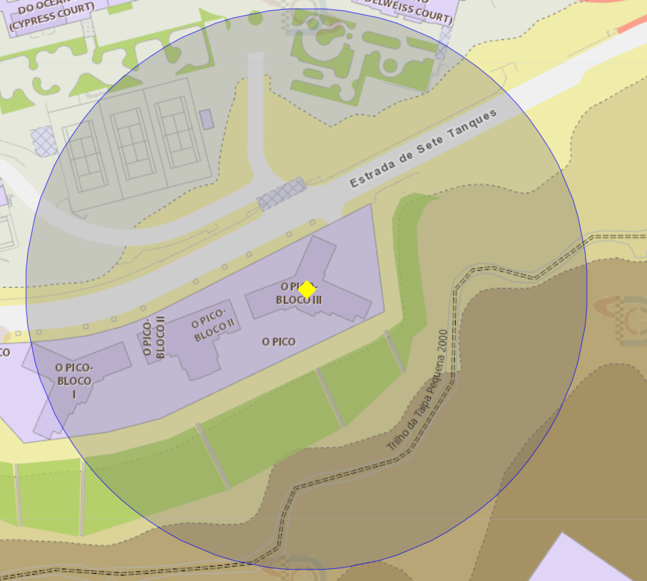 • 9. A área de um raio de 100 metros ao redor do pico (bloco iii) da taipa, está delimitada como zona de risco