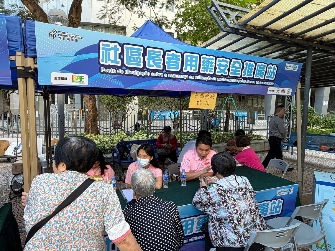 Com o intuito de concretizar de modo contínuo as linhas de acção governativa do Governo da RAEM de “descentralizar” os recursos de serviços para a comunidade e celebrar o Dia Mundial do Farmacêutico, o Instituto para a Supervisão e Administração Farmacêutica (ISAF), em colaboração com a Sociedade Farmacêutica de Macau, a Associação dos Farmacêuticos de Macau e a Associação dos Farmacêuticos de Medicina Chinesa de Macau, organizou, no dia 1 de Novembro do corrente ano, no Jardim da Areia Preta, a “Actividade de divulgação sobre a segurança na utilização de medicamentos pelos idosos na comunidade”, para promover os conhecimentos sobre a segurança na utilização de medicamentos junto dos idosos através de intercâmbio interactivo. A actividade teve como objectivo chamar a atenção do público para a situação da utilização de medicamentos pelos idosos, criar em conjunto uma atmosfera social da utilização segura de medicamentos pelos idosos e aumentar os seus sentimentos de realização e de felicidade.
