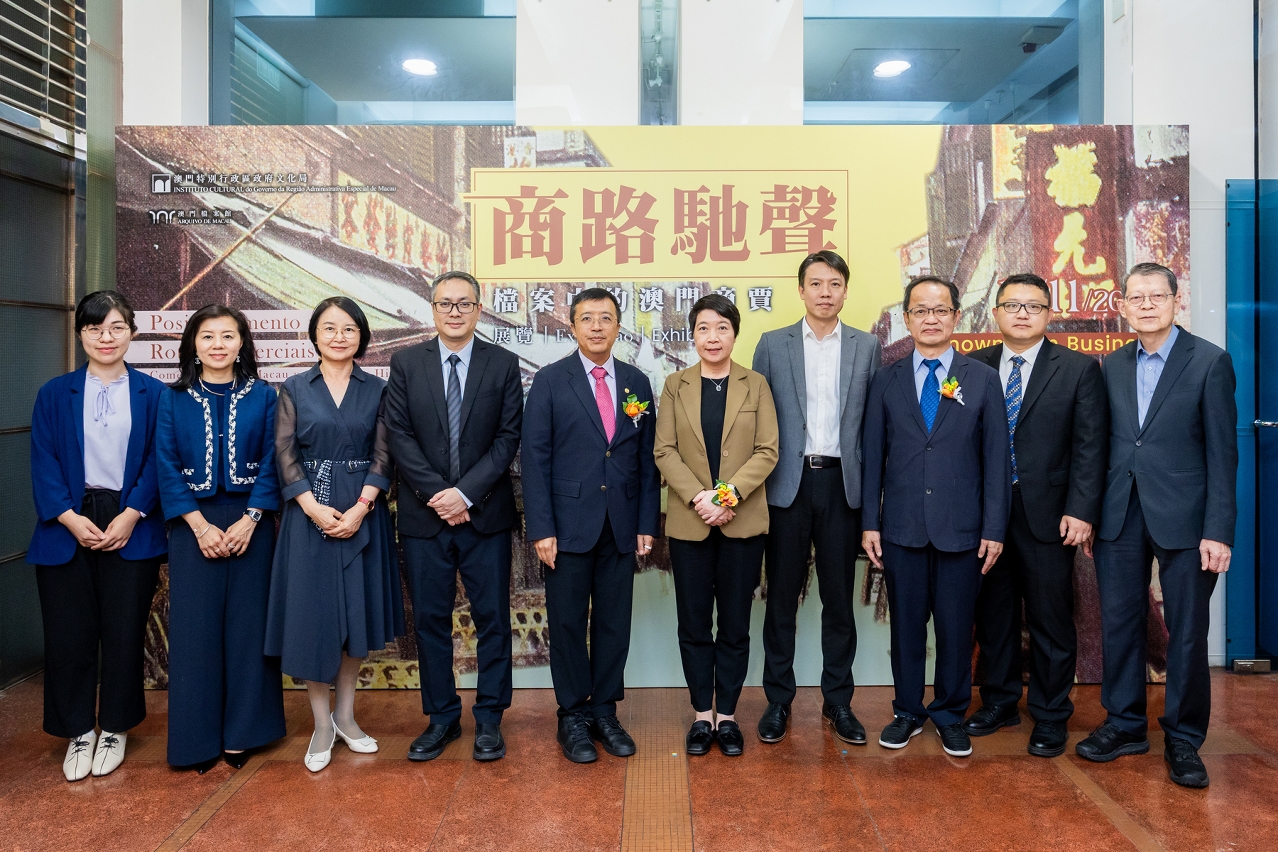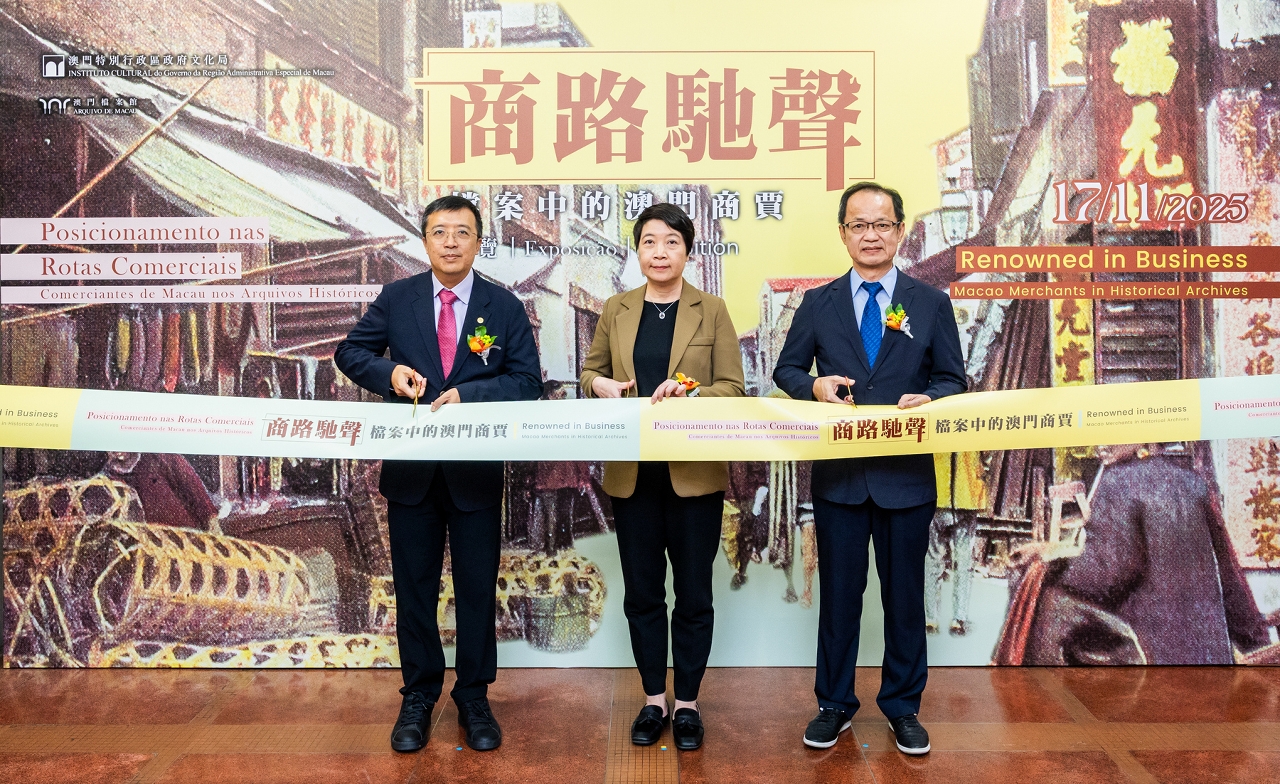 O Arquivo de Macau, sob a égide do Instituto Cultural, realizou-se hoje a cerimónia de inauguração da exposição “Posicionamento nas Rotas Comerciais – Comerciantes de Macau nos Arquivos Históricos”, que decorreu no dia 17 de Novembro no próprio espaço. A cerimónia foi presidida pela Presidente do Instituto Cultural, Leong Wai Man; pelo Presidente da Direcção da Associação Comercial de Macau, Frederico Ma; e pelo membro do Conselho Consultivo de Desenvolvimento Cultural, Ieng Weng Fat.