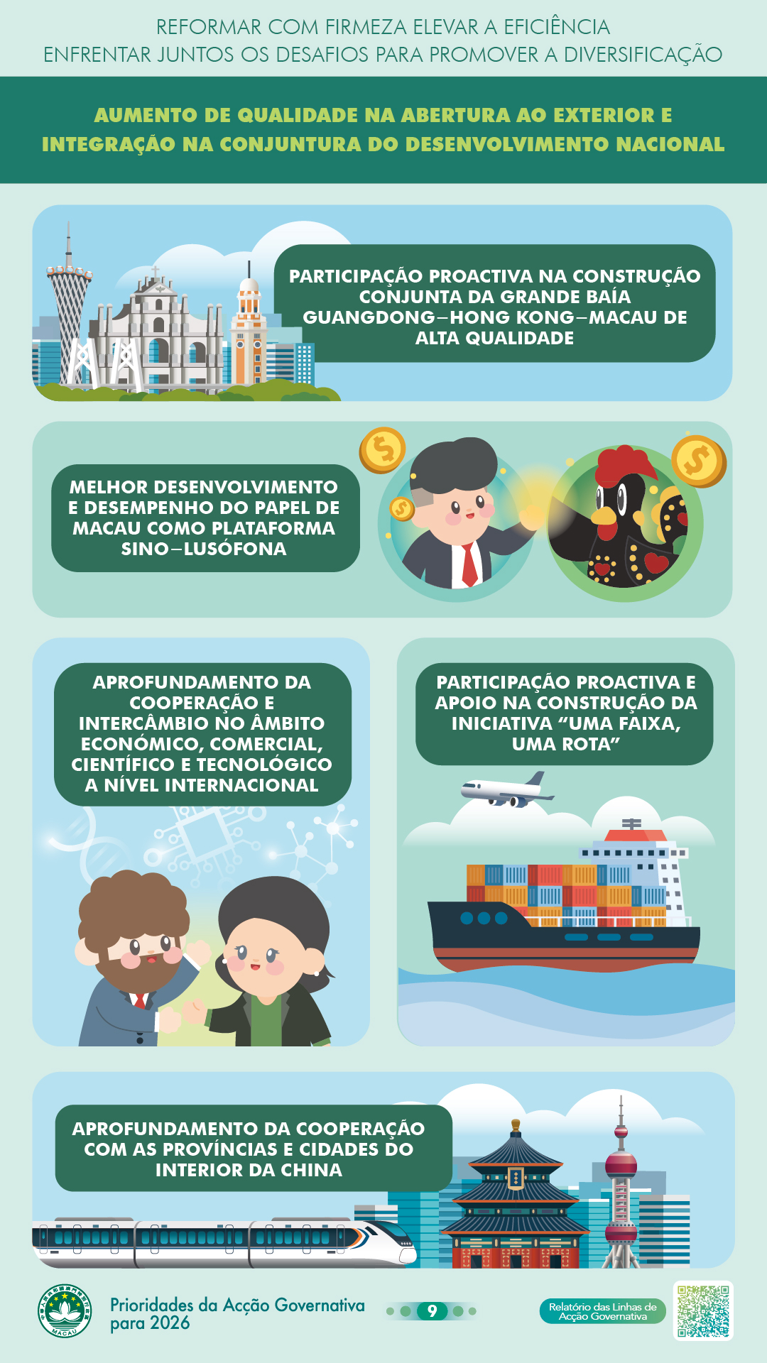 • 8. Aumento de qualidade na abertura ao exterior e integração na conjuntura do desenvolvimento nacional