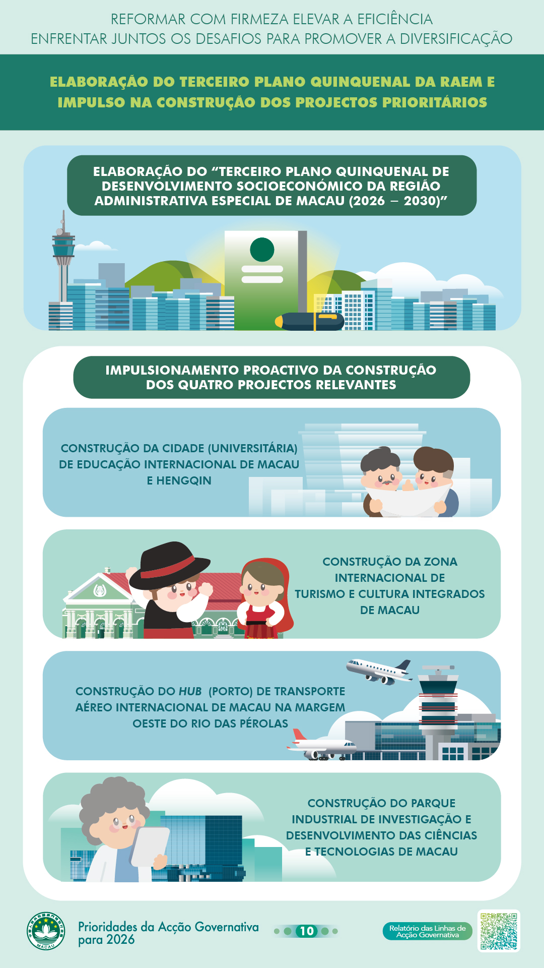 • 9. Elaboração do Terceiro Plano Quinquenal da RAEM e impulso na construção dos projectos prioritários