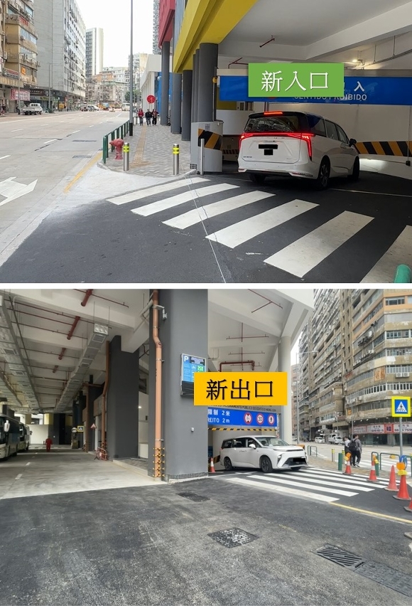 A Direcção dos Serviços para os Assuntos de Tráfego (DSAT) iniciou recentemente as obras de melhoria nos acessos do Parque de Estacionamento Público do Edifício Mong Son. Após vários dias de trabalhos e testes, a primeira fase do ajustamento foi concluída com sucesso e o novo arranjo de entrada e saída passará a estar em vigor a partir de 22 de Novembro (sábado) às 10h00.