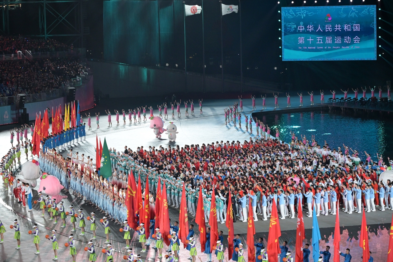 Outro destaque da cerimónia de encerramento foi a série de espectaculares apresentações culturais e desportivas. Com o tema “As Estrelas e o Mar”, foi apresentada pela primeira vez na cerimónia de encerramento a panorâmica de toda a cidade, tendo o mar e o céu como pano de fundo e a paisagem urbana como cenário, bem como foram integrados os elementos tecnológicos, a história de Lingnan e as características culturais da Grande Baía de Guangdong-Hong Kong-Macau, fazendo com que a cerimónia de encerramento da 15.ª edição dos Jogos Nacionais tenha chegado ao fim de forma perfeita.