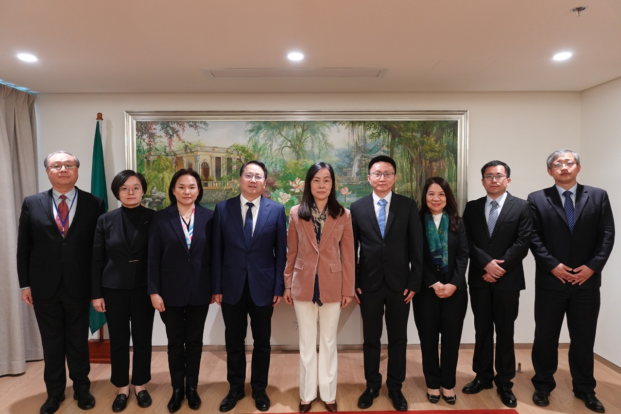 • Encontro entre a Comissária da Auditoria da RAEM, Ao Ieong U, Adjunta da Comissária da Auditoria, Hoi Lai Fong, a Chefe do seu Gabinete, Ho Ioc San, e a delegação chefiada pelo Chefe do Departamento de Investimento, Dai Huahu.