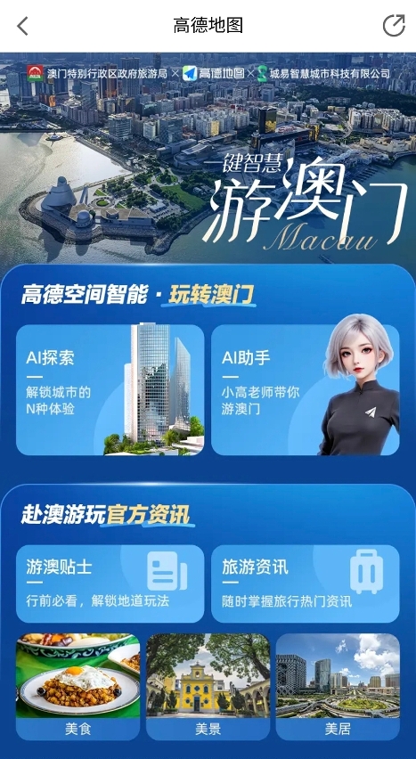 Este ano, a Gaode classificou Macau como a primeira cidade prioritária dos “Super destinos”. A DST e a Gaode aproveitaram a oportunidade para lançar a plataforma de “Viagem inteligente a Macau com um clique”, fornecendo serviços turísticos “one-stop”, como “alimentação, alojamento, viagens, entretenimento”, entre outros, a fim de construir uma plataforma de serviços turísticos inteligentes de turismo tudo-em-um.