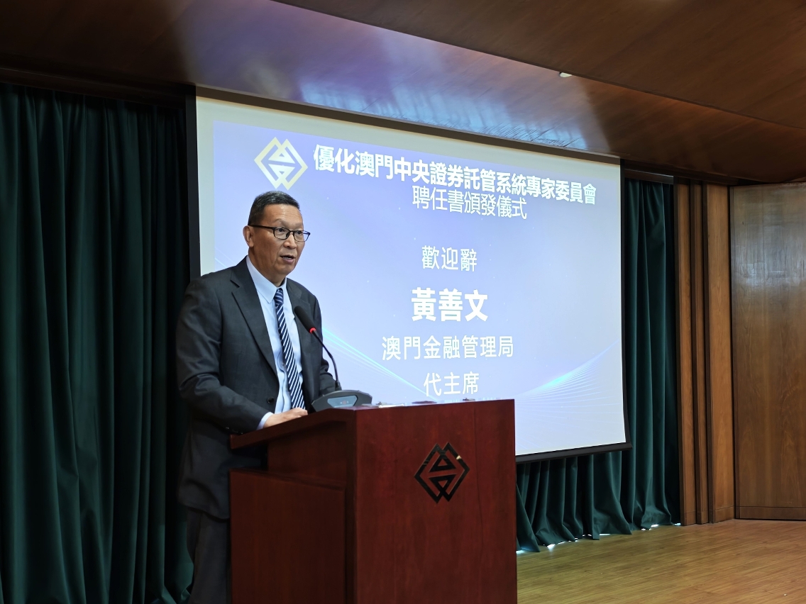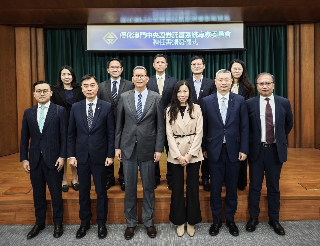 A Autoridade Monetária de Macau (adiante designada por “AMCM”) realizou ontem, dia 26, a cerimónia de entrega das cartas de nomeação da “Comissão de Especialistas para a Optimização da Central de Depósito de Valores Mobiliários de Macau”; na ocasião, estiveram presentes cerca de 30 convidados, incluindo o Presidente Substituto do Conselho de Administração da AMCM, Dr. Wong Sin Man, a Membro do Conselho de Administração da AMCM e Presidente do Conselho de Administração da Central de Depósito e Liquidação de Valores Mobiliários de Macau, Sociedade Unipessoal Limitada (adiante designada por “MCSD”), Dra. Lau Hang Kun, bem como membros do Conselho de Administração da MCSD.