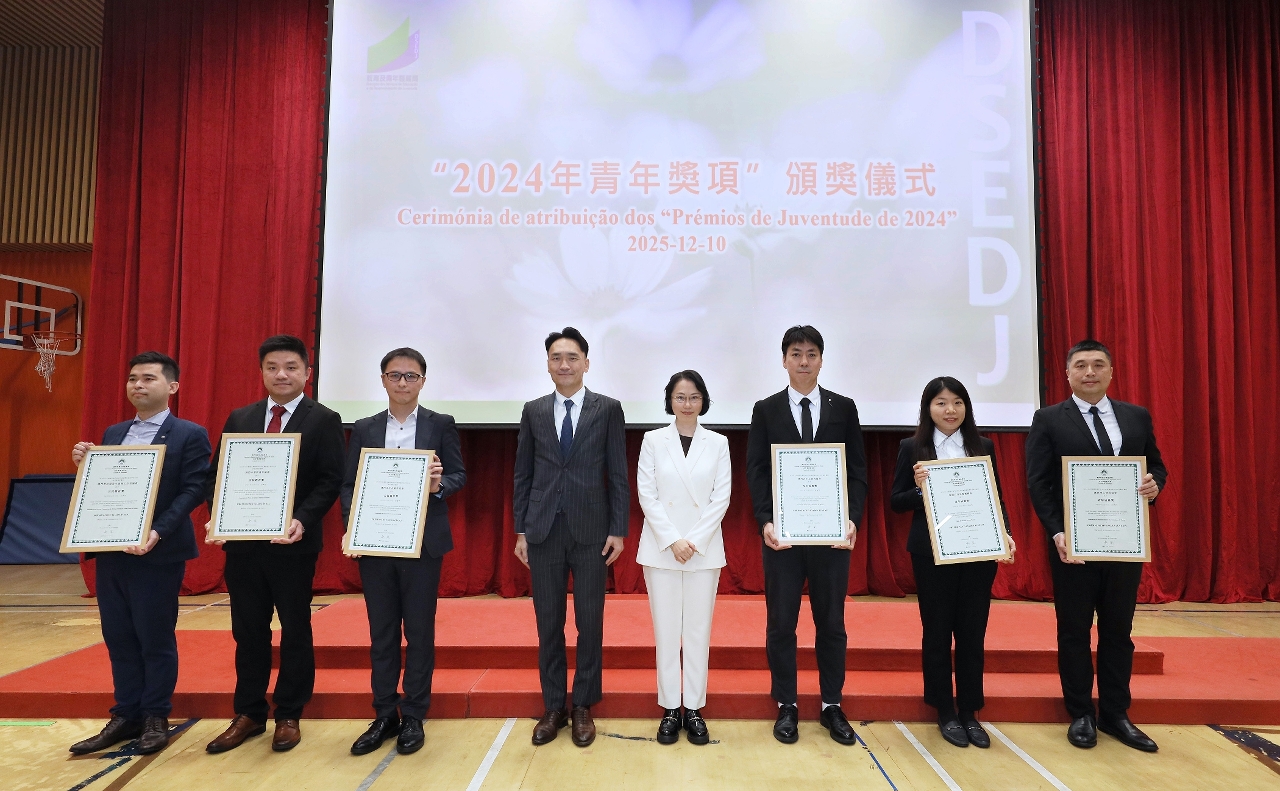 Antes do início da conferência, realizou-se a Cerimónia de Atribuição de Prémios no âmbito dos “Prémios de Juventude de 2024”, tendo sido atribuídos dois prémios, nomeadamente o “Prémio Actividades Juvenis” e o “Prémio Educação Cívica”. O “Prémio Actividades Juvenis” foi atribuído à Rede de Serviços Juvenis Bosco, à Associação dos Jovens Voluntários de Macau e à Associação de Desenvolvimento dos Estudiosos de Macau, enquanto o “Prémio Educação Cívica” foi atribuído à Associação dos Jovens Voluntários de Macau, à Associação de Nova Juventude Chinesa de Macau e à Associação dos Jovens Voluntários de Serviço Social da Areia Preta de Macau.