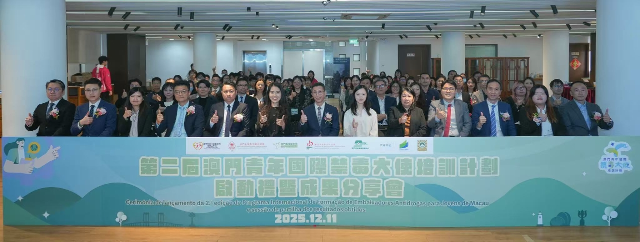 A Cerimónia de lançamento da “2.ª edição do Programa Internacional de Formação de Embaixadores Antidrogas para Jovens de Macau” e a sessão de partilha dos resultados obtidos, co-organizada pelo Instituto de Acção Social (IAS), pela Associação Geral de Estudantes Chong Wa de Macau, pela Federação de Juventude de Macau, pela Associação de Nova Juventude Chinesa de Macau e pelo Macau Youth Development Service Centre, foi realizada no dia 11 de Dezembro, no Museu Memorial Lin Zexu de Macau, tendo contado com a participação de mais de 120 pessoas, incluindo os representantes da Comissão de Luta contra à droga, dos serviços públicos, das escolas, das instituições de serviço social, dos jovens embaixadores antidrogas, dos estudantes e professores.