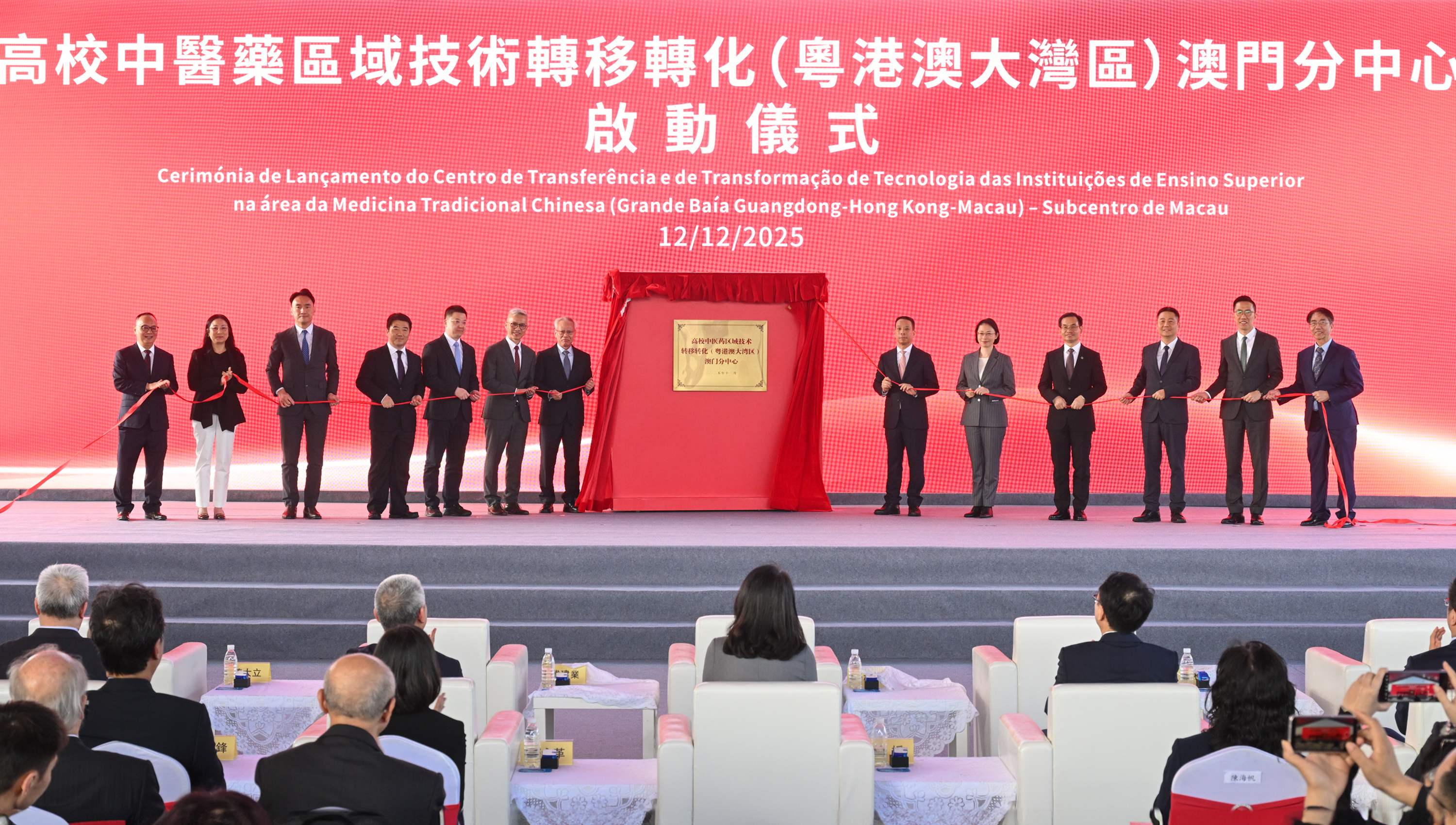 Em conformidade com as Linhas de Acção Governativa para o ano de 2026 e centrando-se na construção dos “quatro projectos relevantes”, o Governo da Região Administrativa Especial de Macau (RAEM) realizou na tarde de 12 de Dezembro de 2025, na Zona de Cooperação Aprofundada entre Guangdong e Macau em Hengqin (doravante designada por “Zona de Cooperação”), a Cerimónia do Início da Obra de Construção do Campus da Universidade de Macau na Zona de Cooperação Aprofundada entre Guangdong e Macau em Hengqin (doravante designada por “Cerimónia do Início da Obra da UM”) e, simultaneamente em Macau e Hengqin, a Cerimónia de Lançamento do Centro de Transferência e de Transformação de Tecnologia das Instituições de Ensino Superior na área da Medicina Tradicional Chinesa (Grande Baía Guangdong–Hong Kong–Macau) – Subcentro de Macau (doravante designada por “Cerimónia de Lançamento do Subcentro de Macau”).