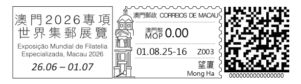 No âmbito da realização da Exposição Mundial de Filatelia Especializada, Macau 2026 (adiante designada por “Macau 2026”), a Direcção dos Serviços de Correios e Telecomunicações irá disponibilizar, entre 2 de Março e 1 de Julho de 2026, um novo carimbo publicitário de máquina de franquiar e uma nova flâmula publicitária de impressora de etiqueta postal, com o objectivo de promover este grande evento internacional e enriquecer a oferta filatélica.