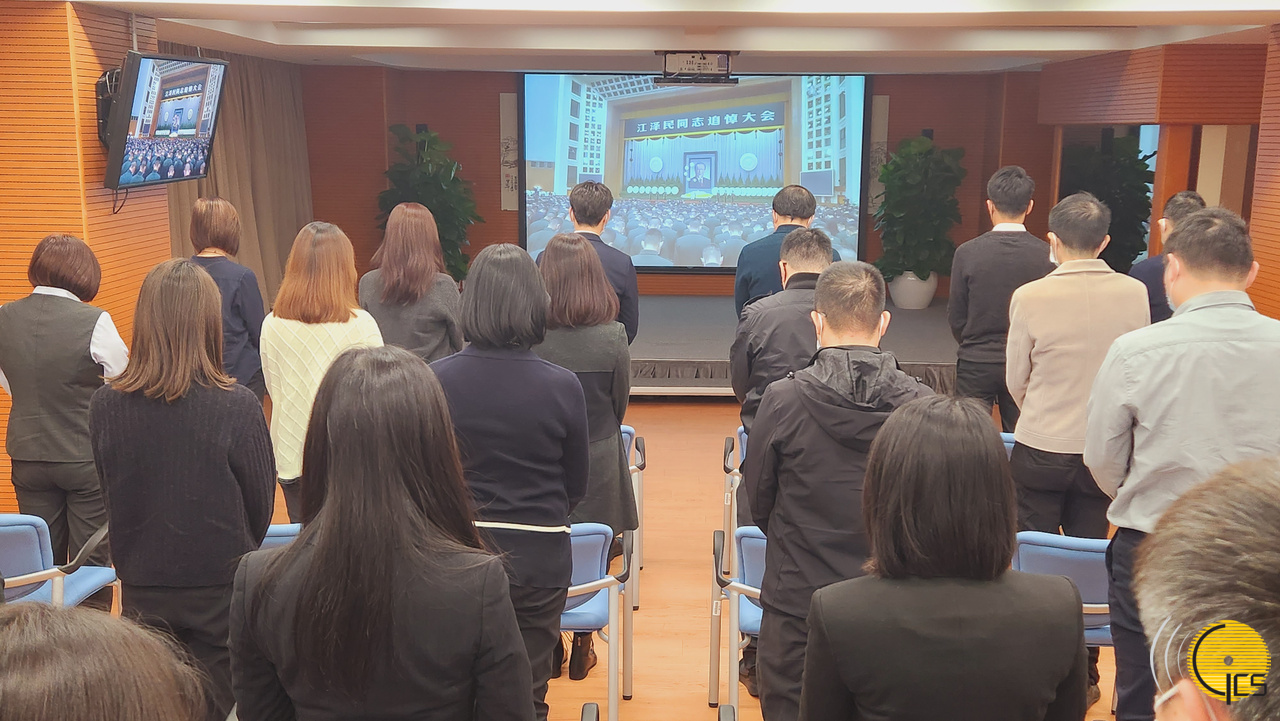廉政公署人员收看前国家主席江泽民追悼大会现场直播,在追悼大会默哀时,全体人员默哀三分钟。