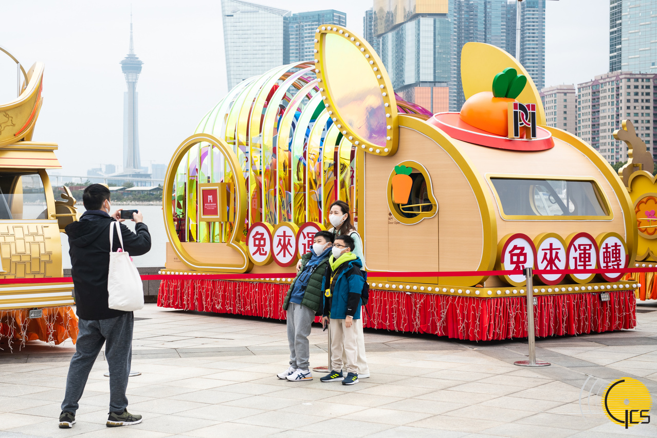 • 参与汇演的花车于澳门科学馆海堤展出,居民及旅客到场观赏,打卡留念。