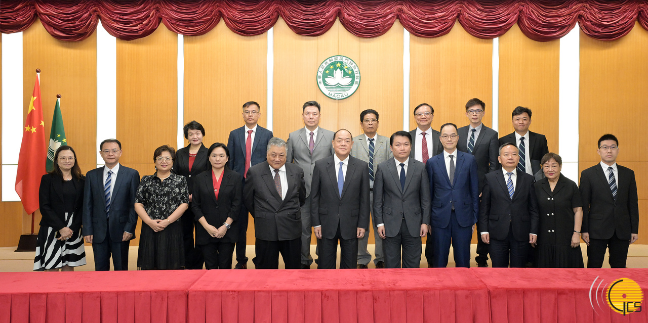 行政长官贺一诚与澳门中小企业协进会一行座谈,就制定2024年财政年度施政报告听取意见和建议。
