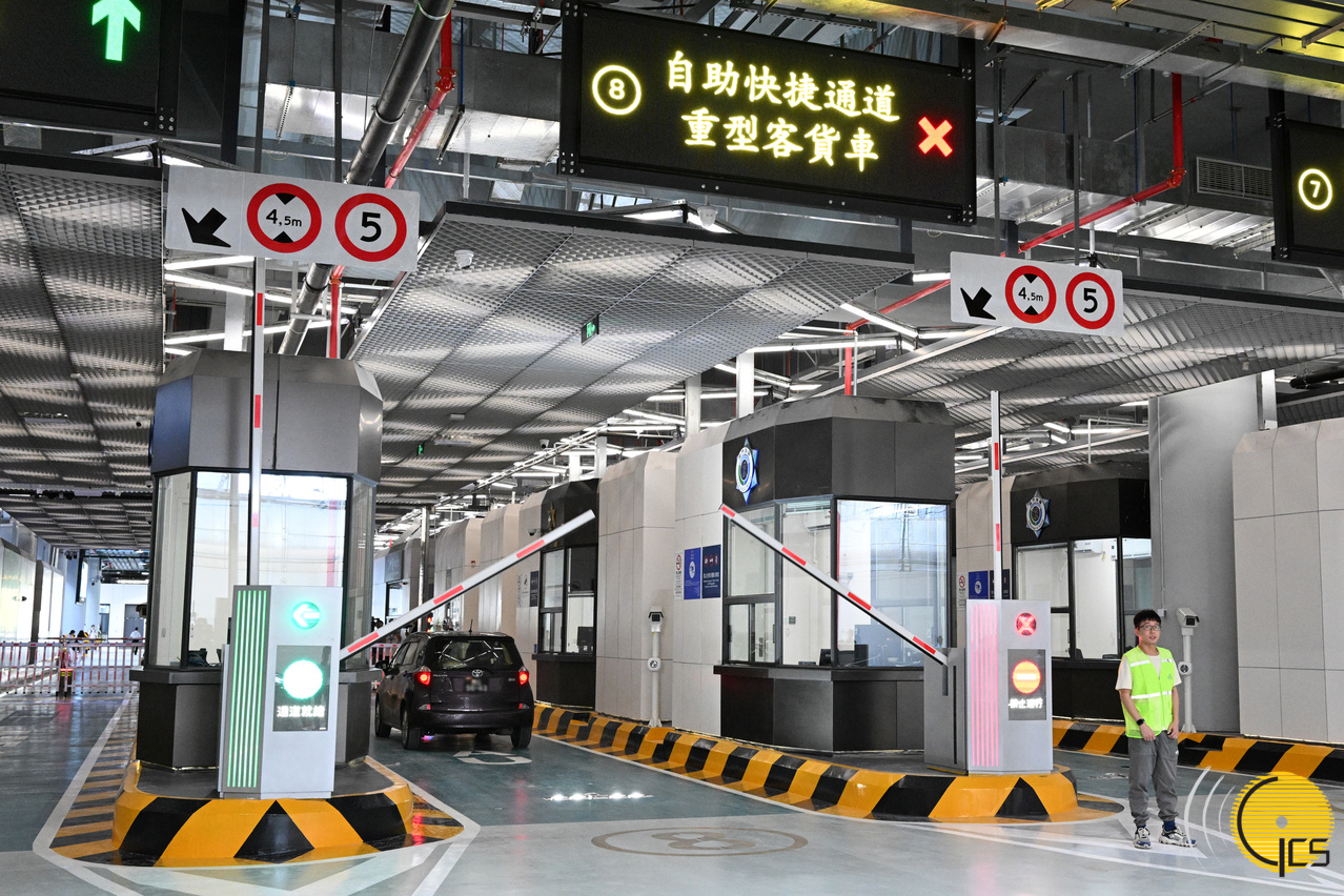 横琴口岸客货车联合一站式部分车道开通试运行,出境车道秩序井然。