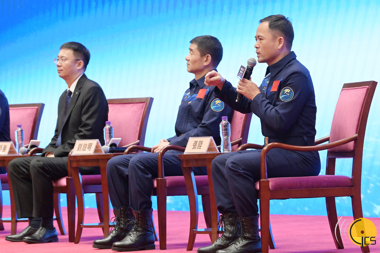 神舟十五号乘组航天员张陆回答与会者提问时分享他执行出舱任务的经历