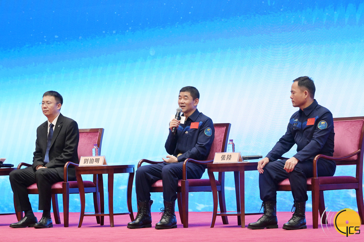 神舟十四号乘组指令长陈冬在答问环节中和与会人士互动