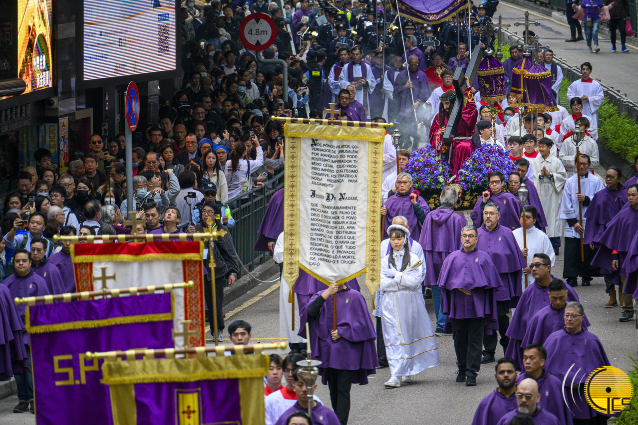 出游队伍以“拜苦路”的方式象征圣经中耶稣受难死亡的经过,治安警察局乐队沿途演奏哀歌,场面庄严神圣。