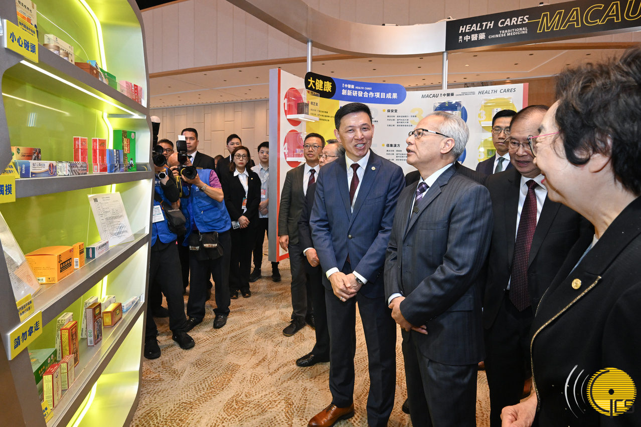 行政长官岑浩辉与一众主礼嘉宾主持第11届澳门工展会开幕式。