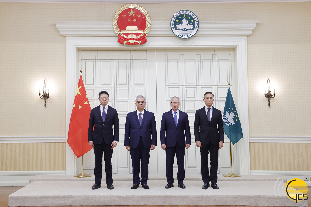 行政长官岑浩辉与新任行政法务司司长黄少泽、新任保安司司长陈子劲、新任检察院检察长唐晓峰合影。